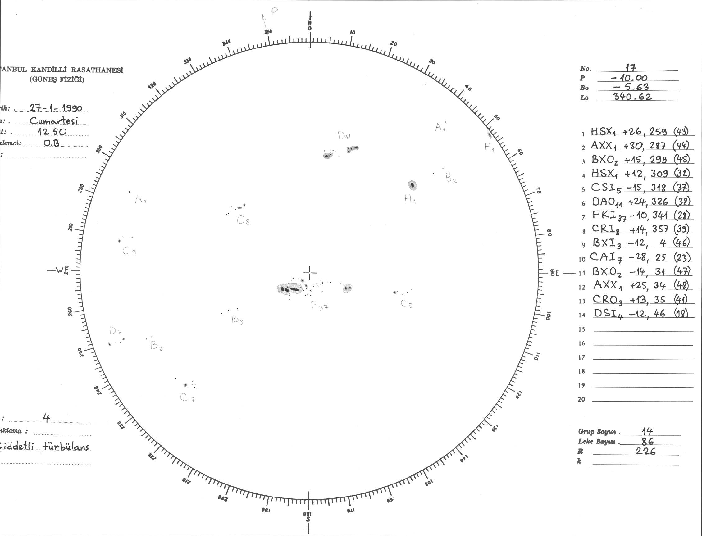 Güneş Lekesi Çizimi - 27.01.1990
