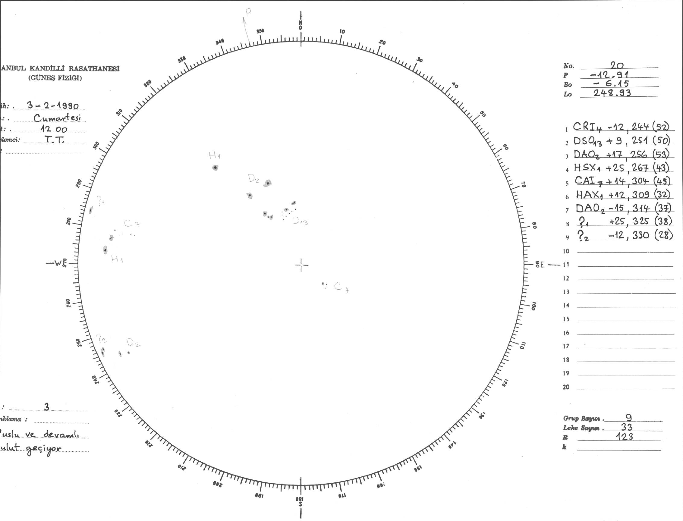 Güneş Lekesi Çizimi - 03.02.1990
