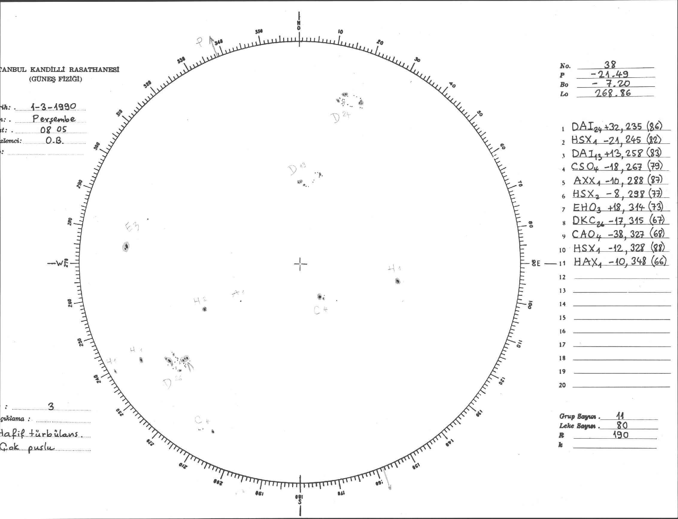 Güneş Lekesi Çizimi - 01.03.1990