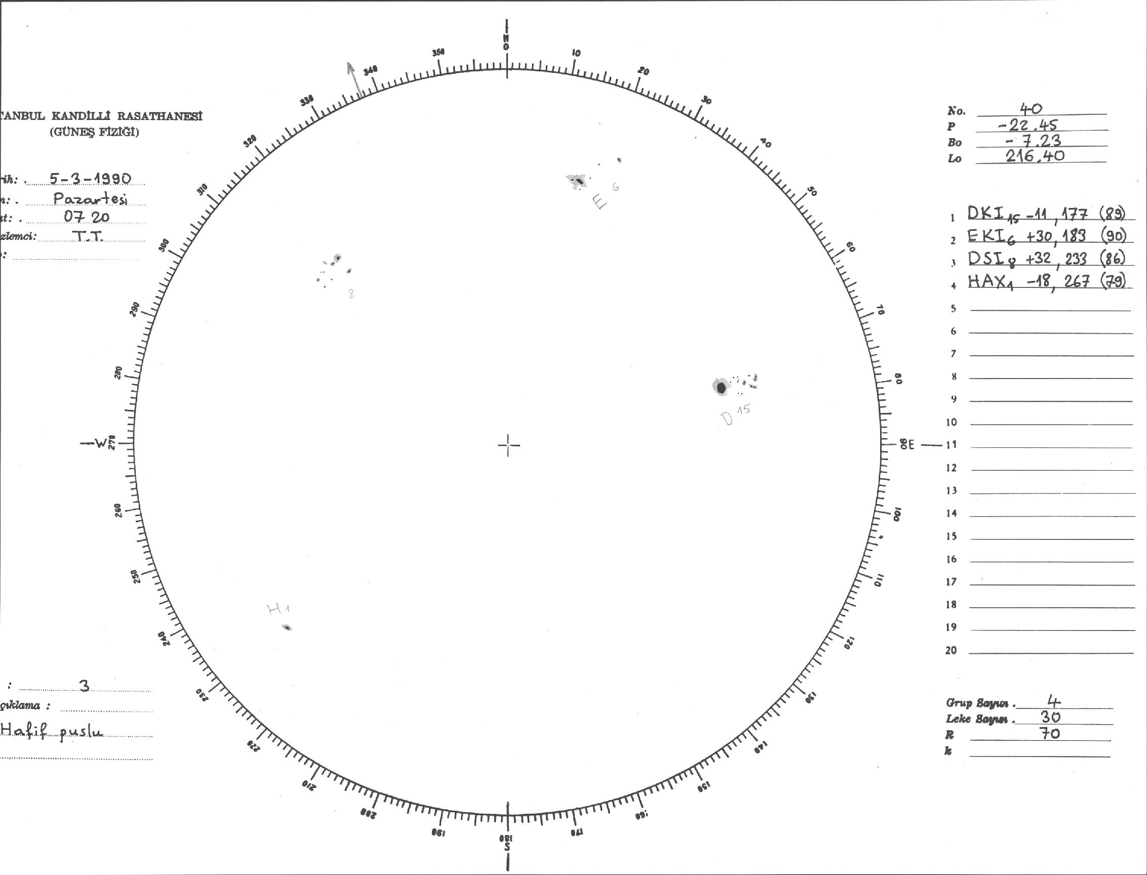 Güneş Lekesi Çizimi - 05.03.1990