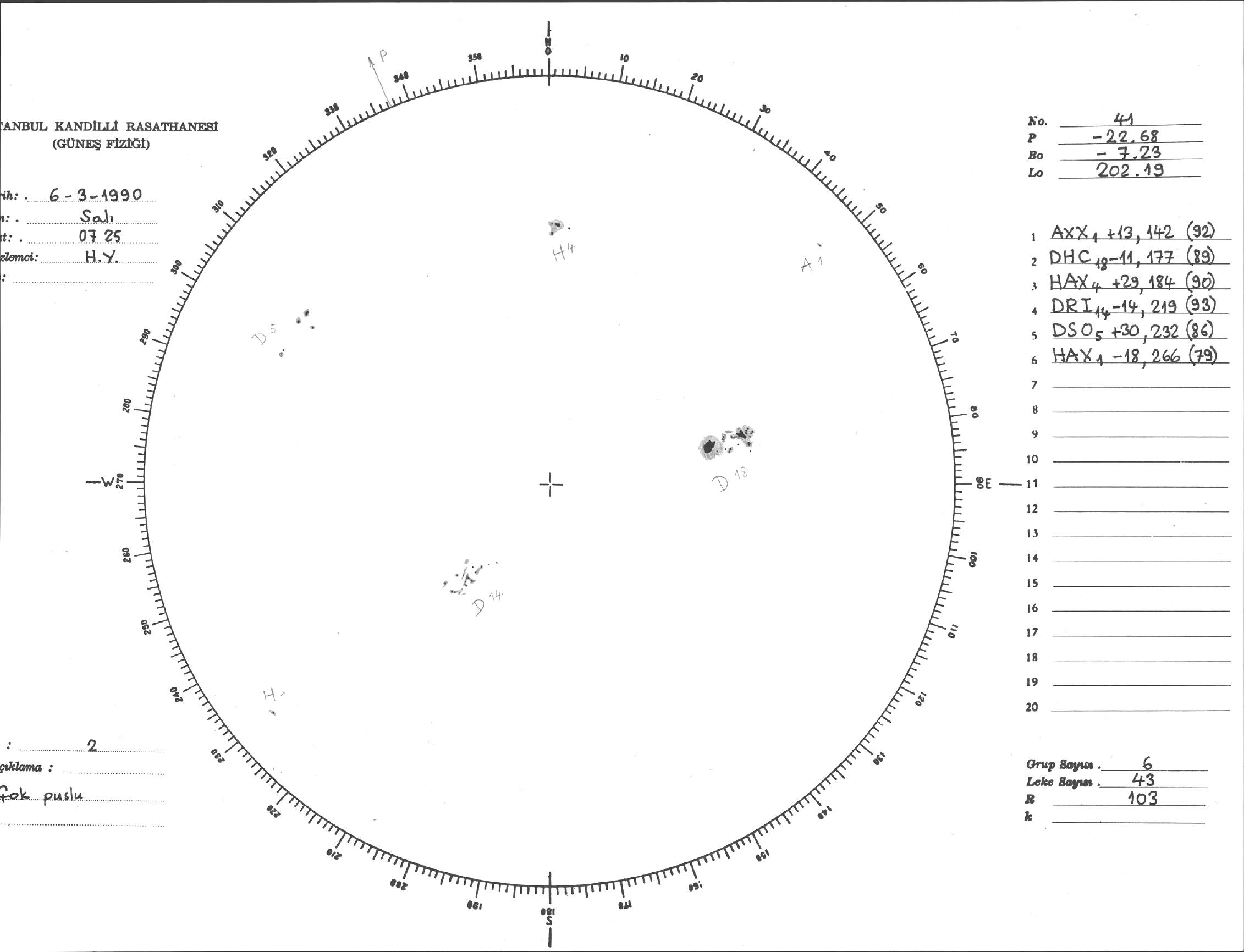 Güneş Lekesi Çizimi - 06.03.1990