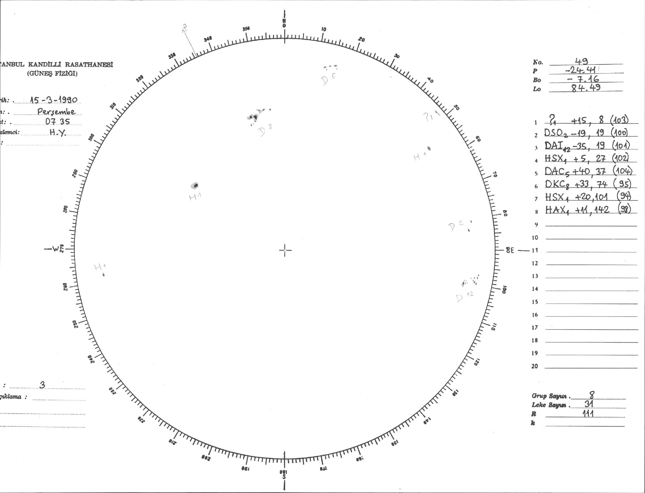 Güneş Lekesi Çizimi - 15.03.1990