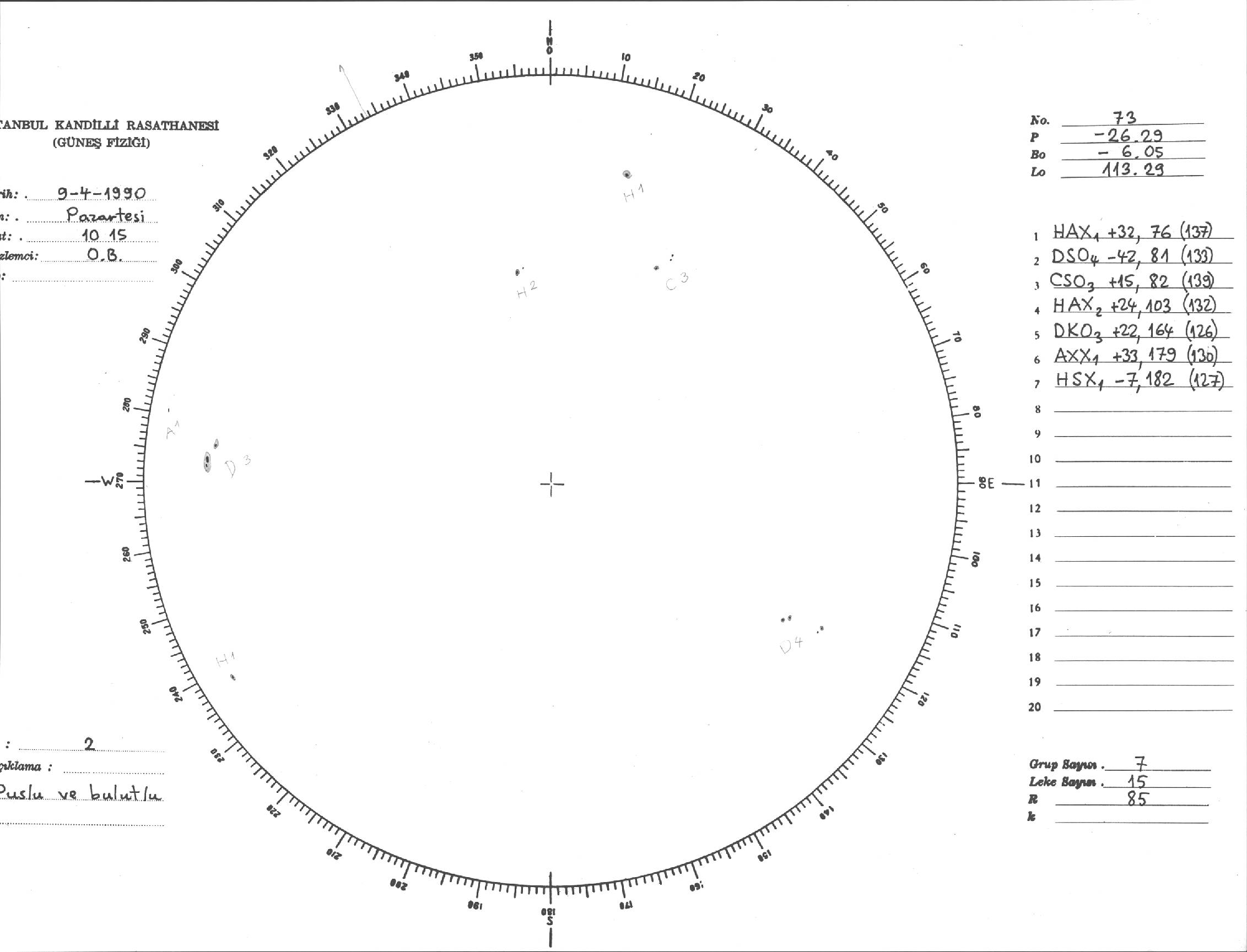 Güneş Lekesi Çizimi - 09.04.1990