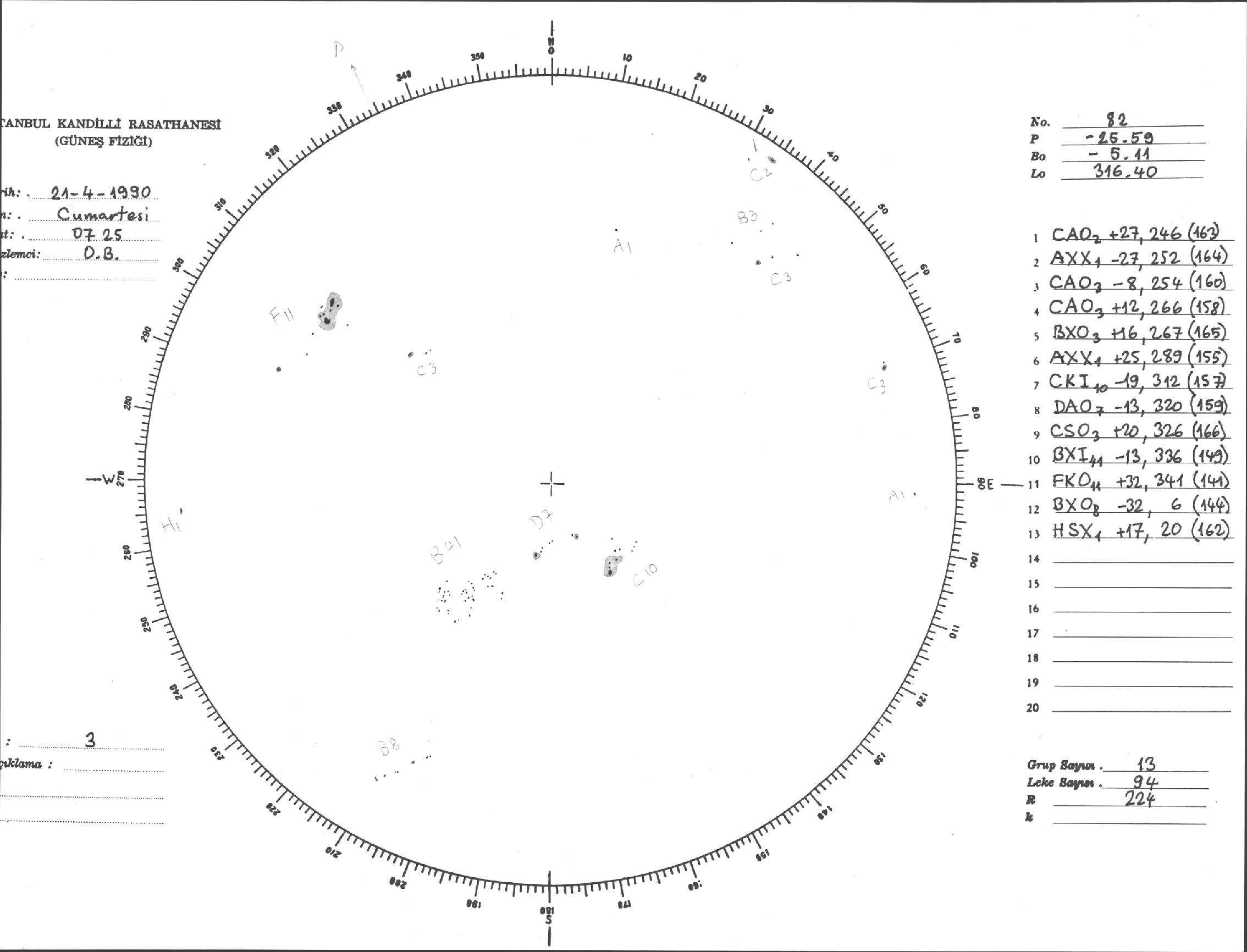 Güneş Lekesi Çizimi - 21.04.1990