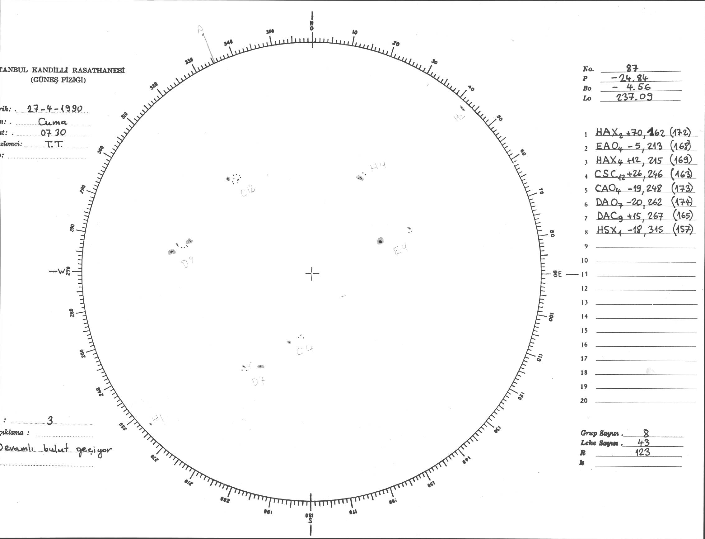 Güneş Lekesi Çizimi - 27.04.1990