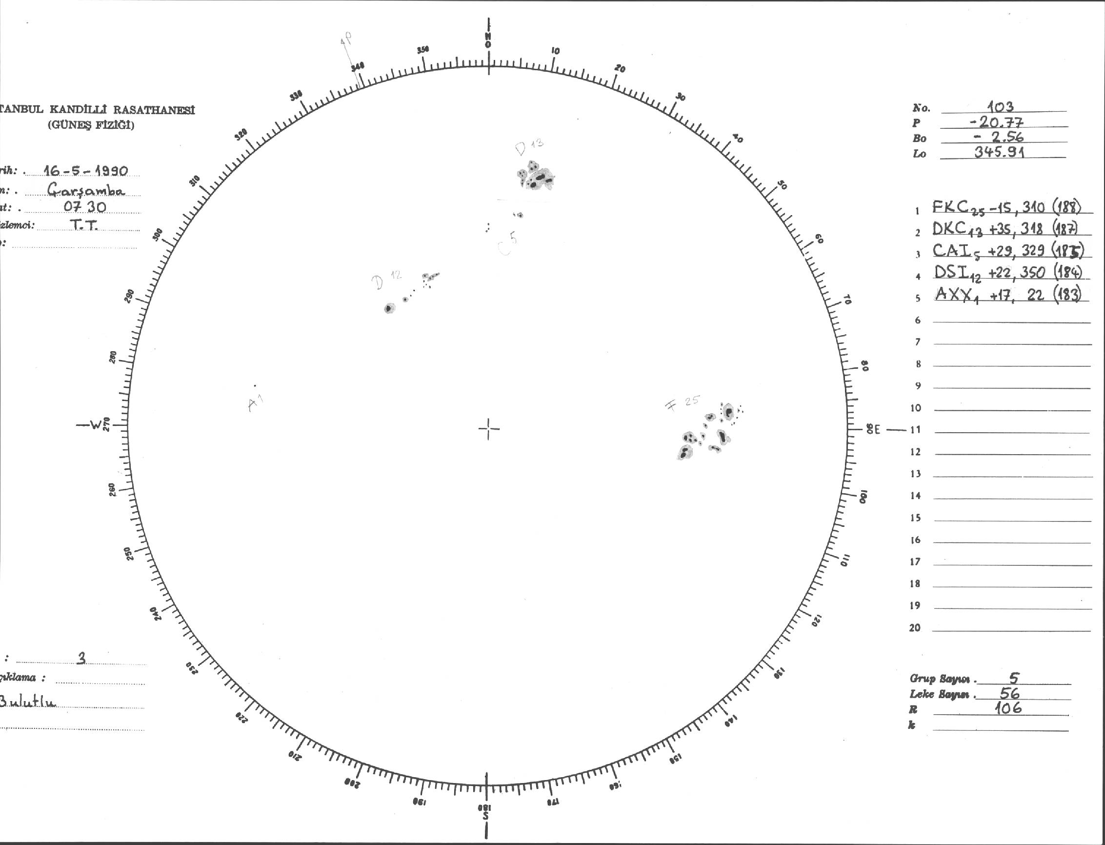 Güneş Lekesi Çizimi - 16.05.1990