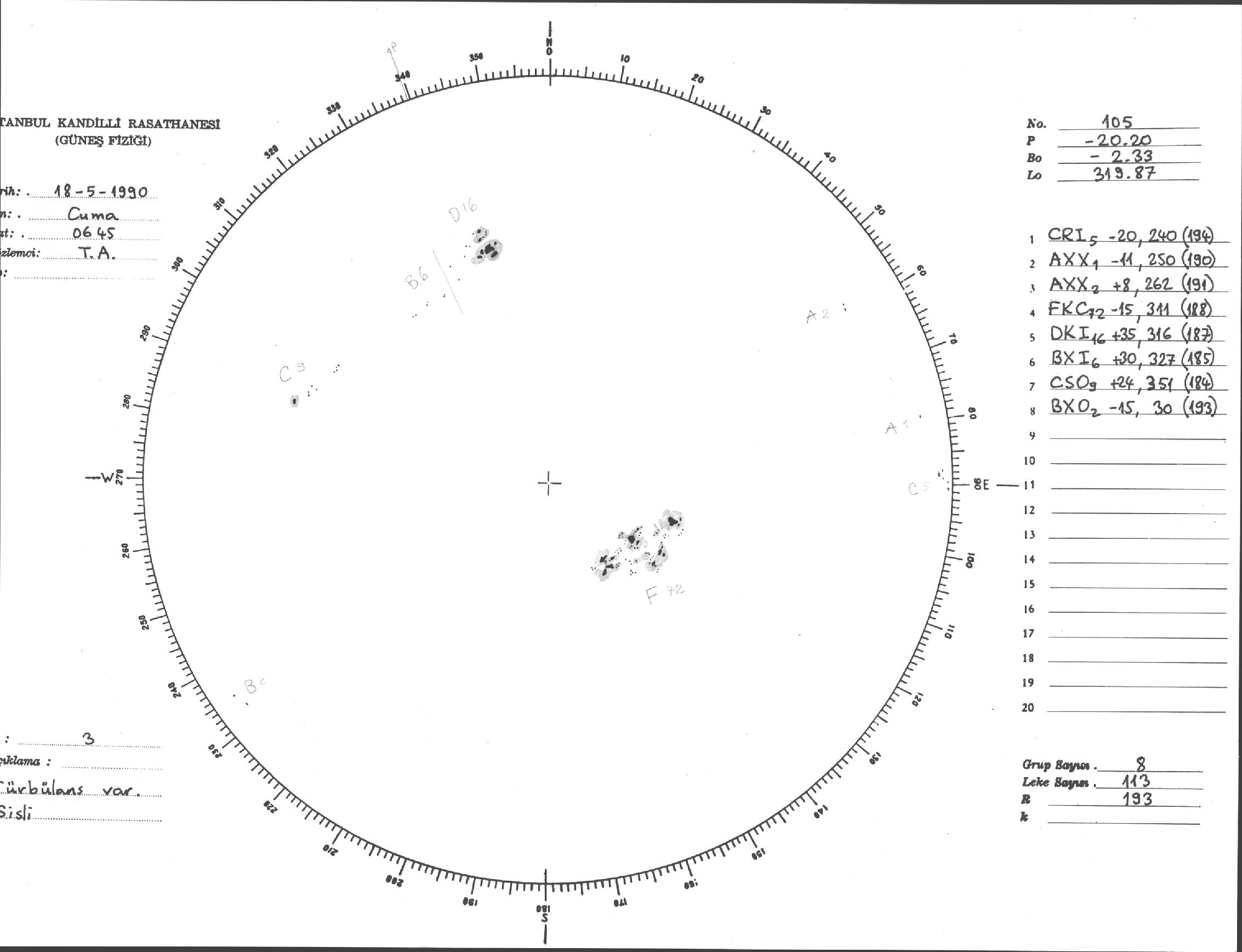 Güneş Lekesi Çizimi - 18.05.1990