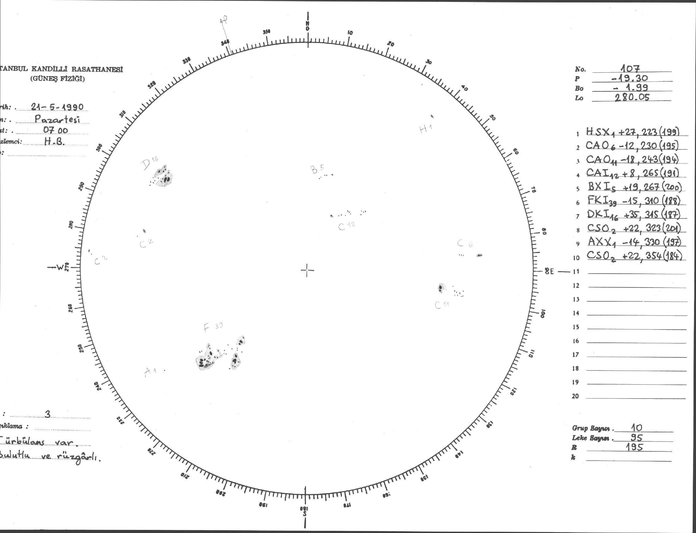 Güneş Lekesi Çizimi - 21.05.1990