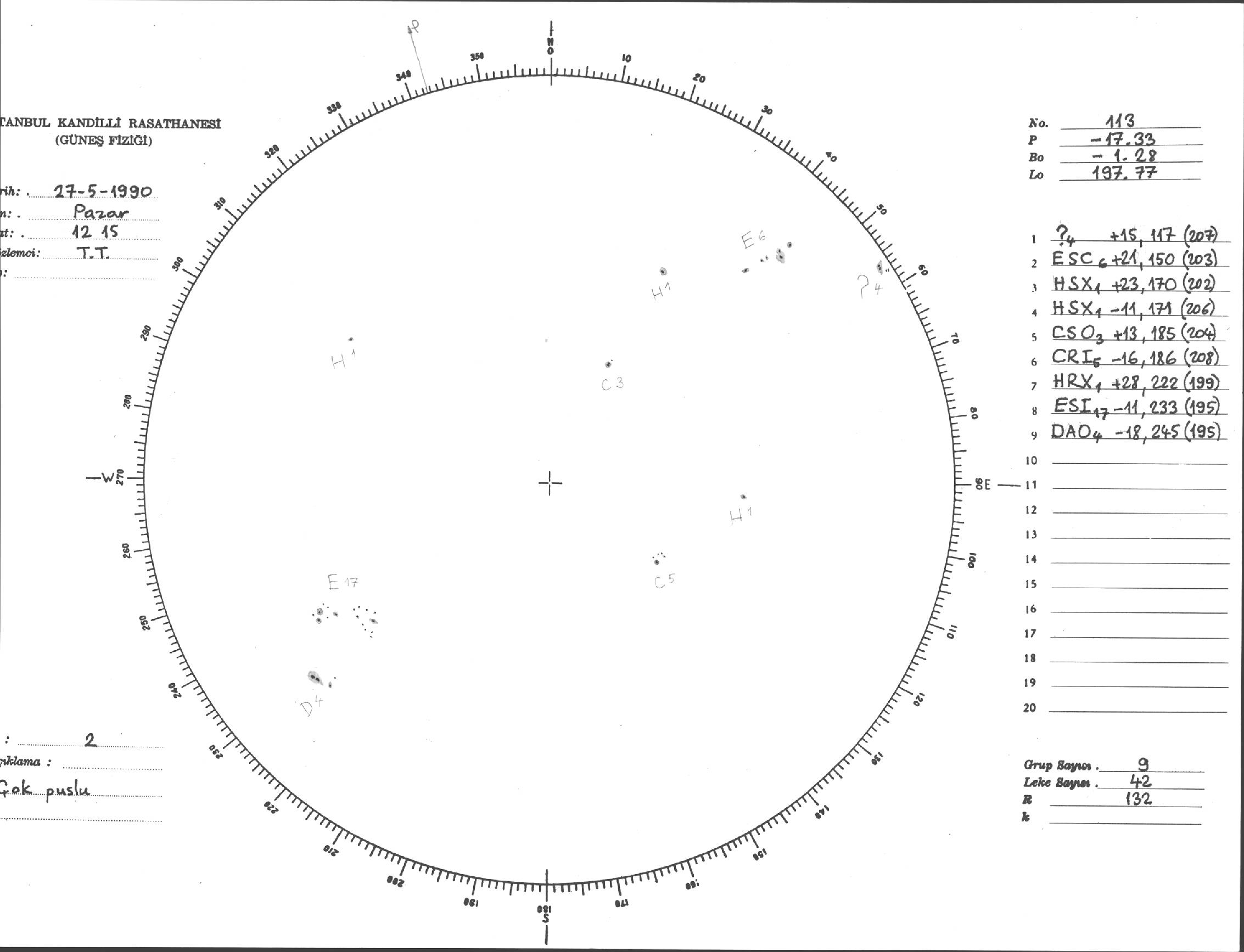 Güneş Lekesi Çizimi - 27.05.1990