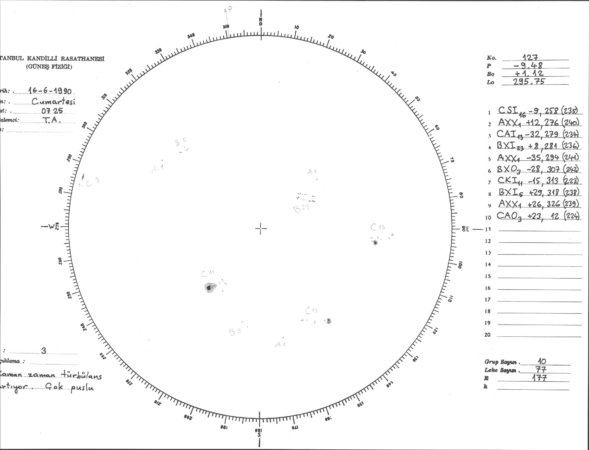 Güneş Lekesi Çizimi - 16.06.1990