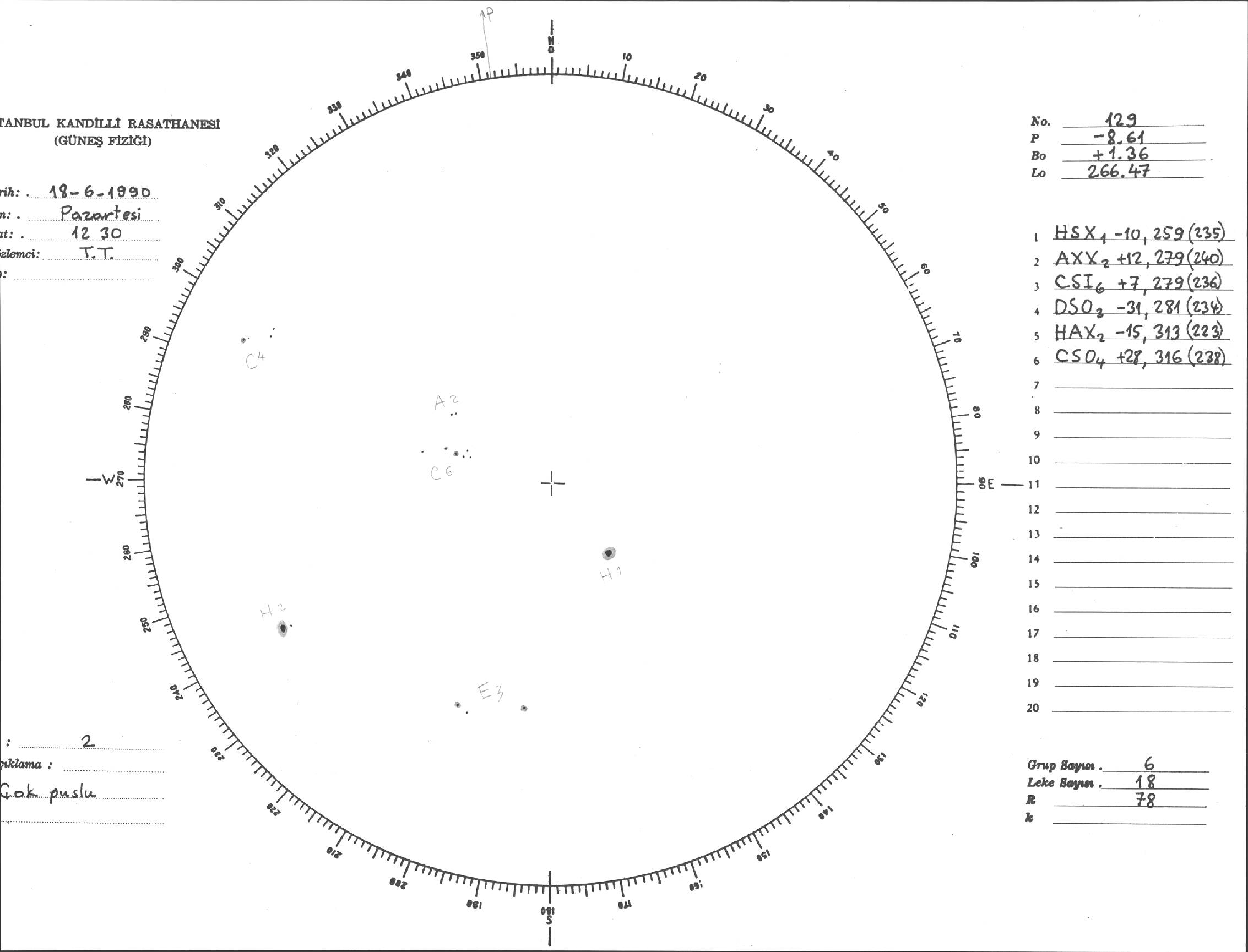 Güneş Lekesi Çizimi - 18.06.1990
