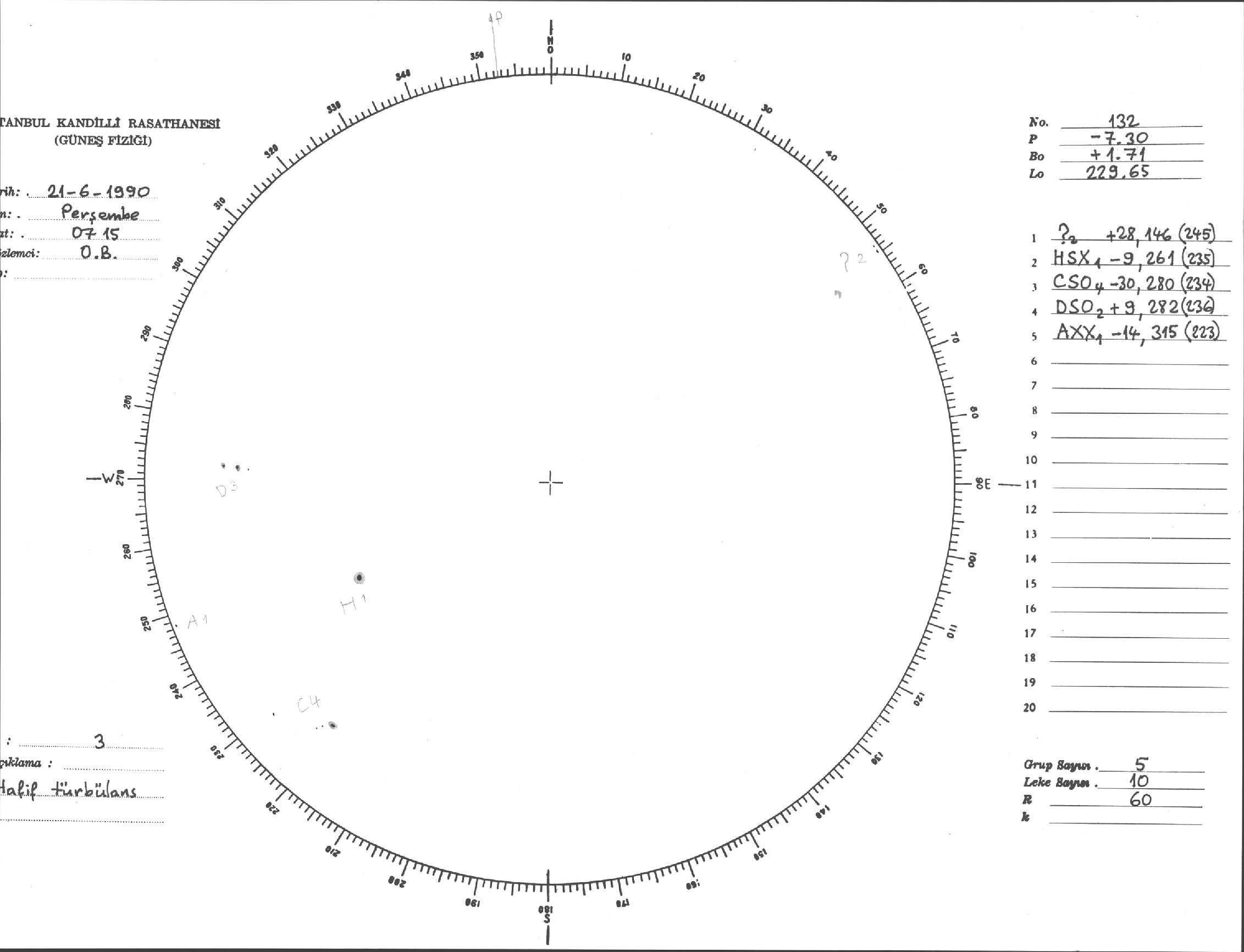 Güneş Lekesi Çizimi - 21.06.1990