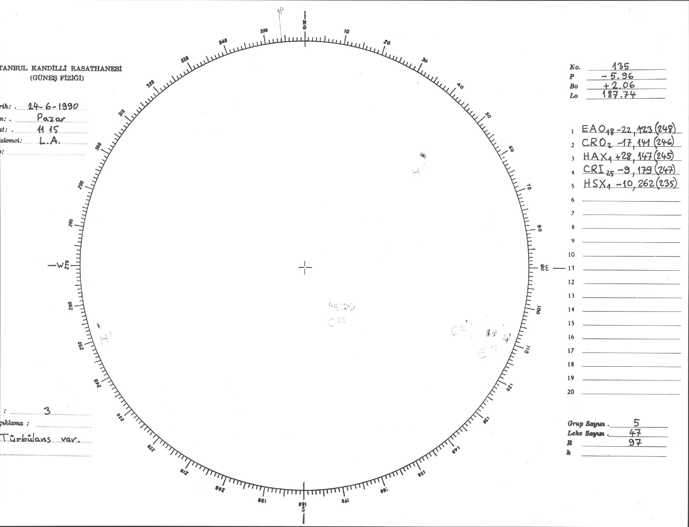 Güneş Lekesi Çizimi - 24.06.1990