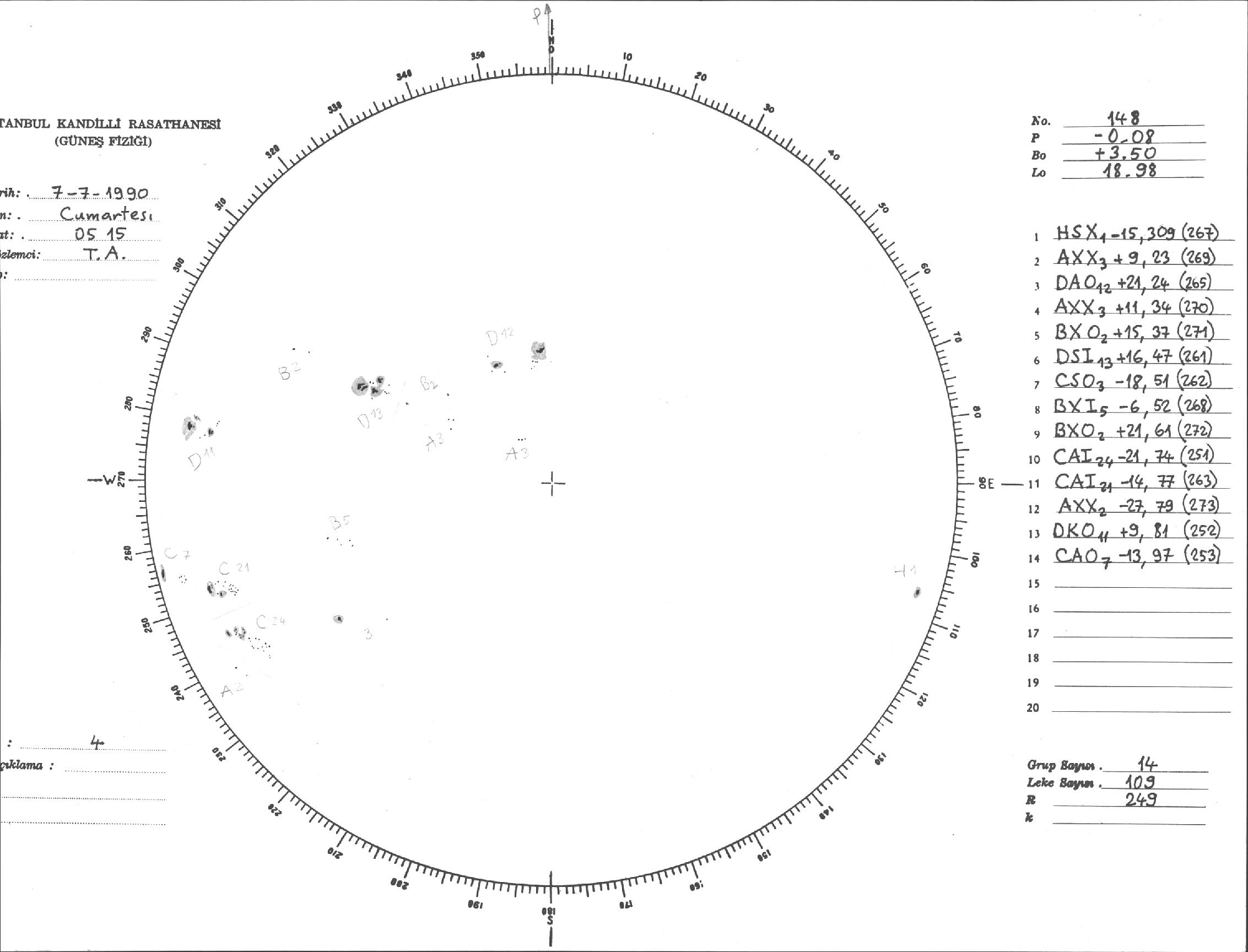 Güneş Lekesi Çizimi - 07.07.1990