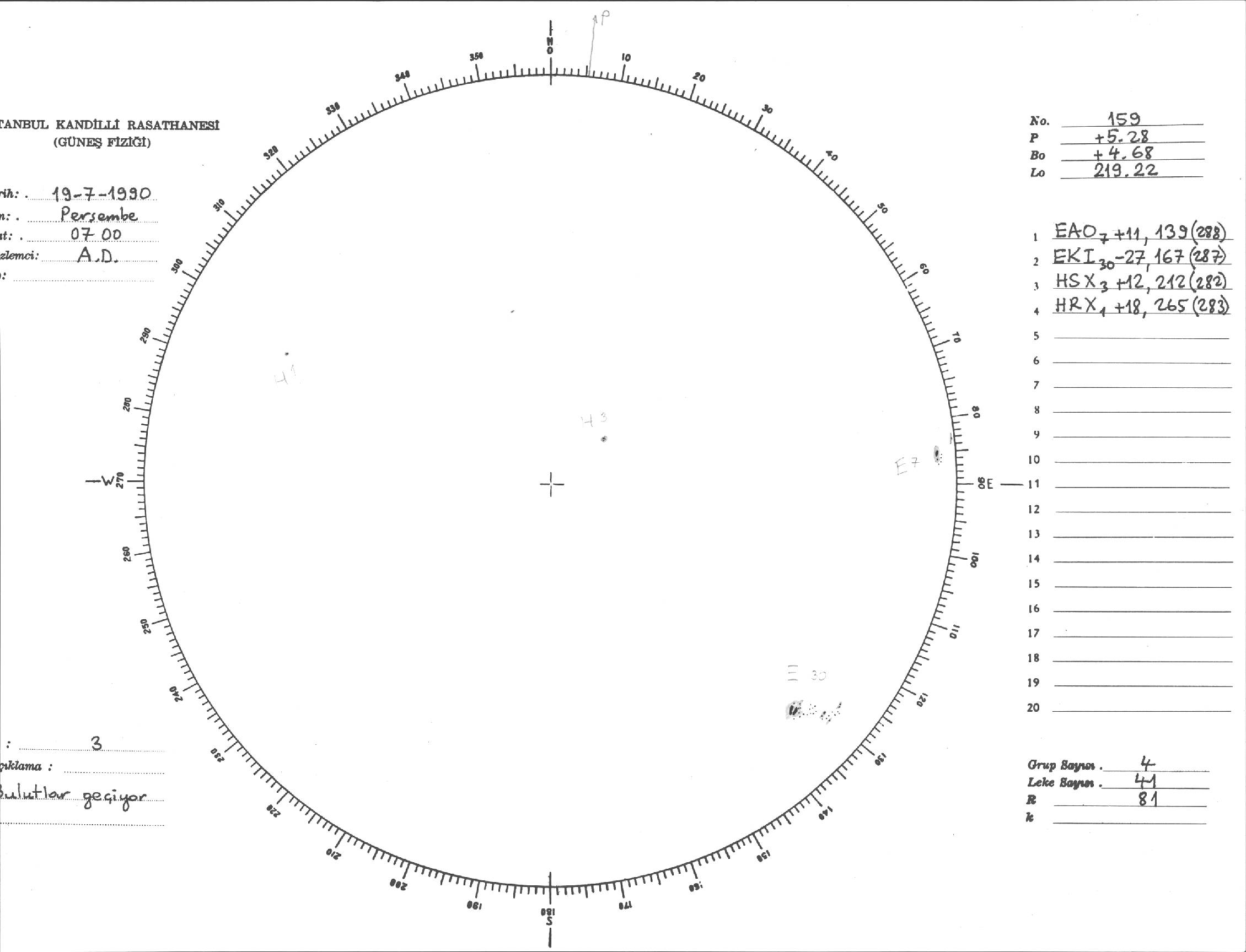 Güneş Lekesi Çizimi - 19.07.1990