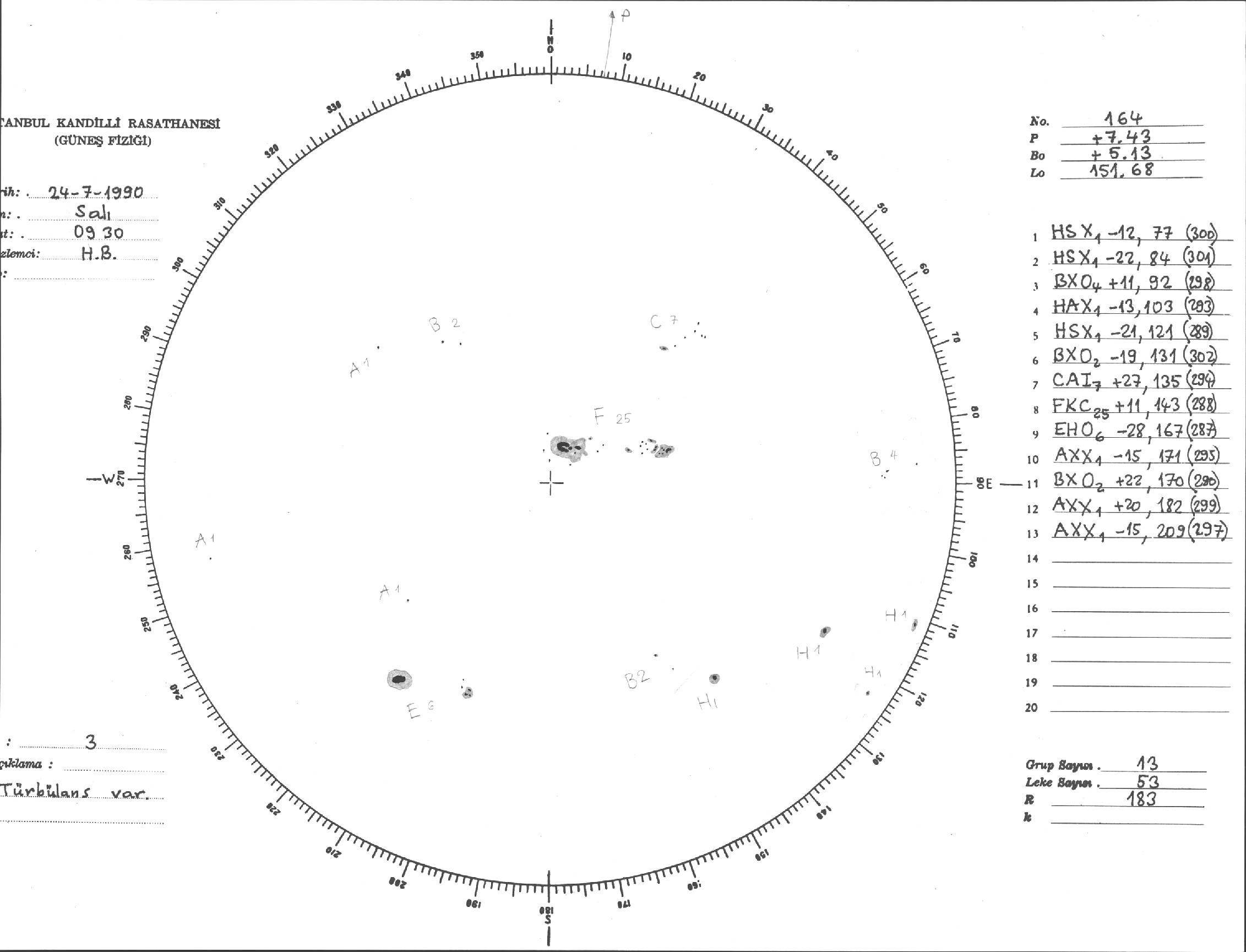 Güneş Lekesi Çizimi - 24.07.1990