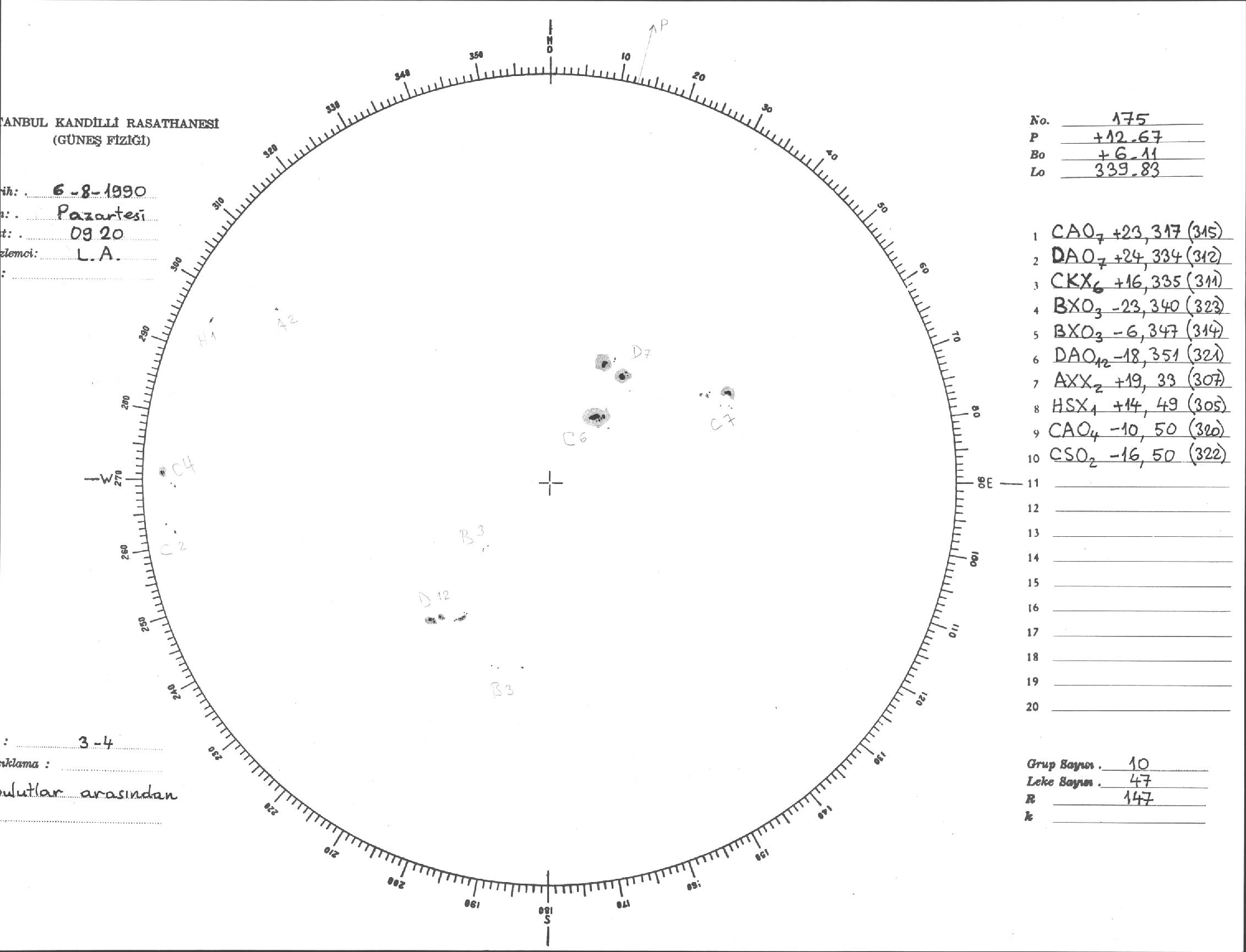 Güneş Lekesi Çizimi - 06.08.1990