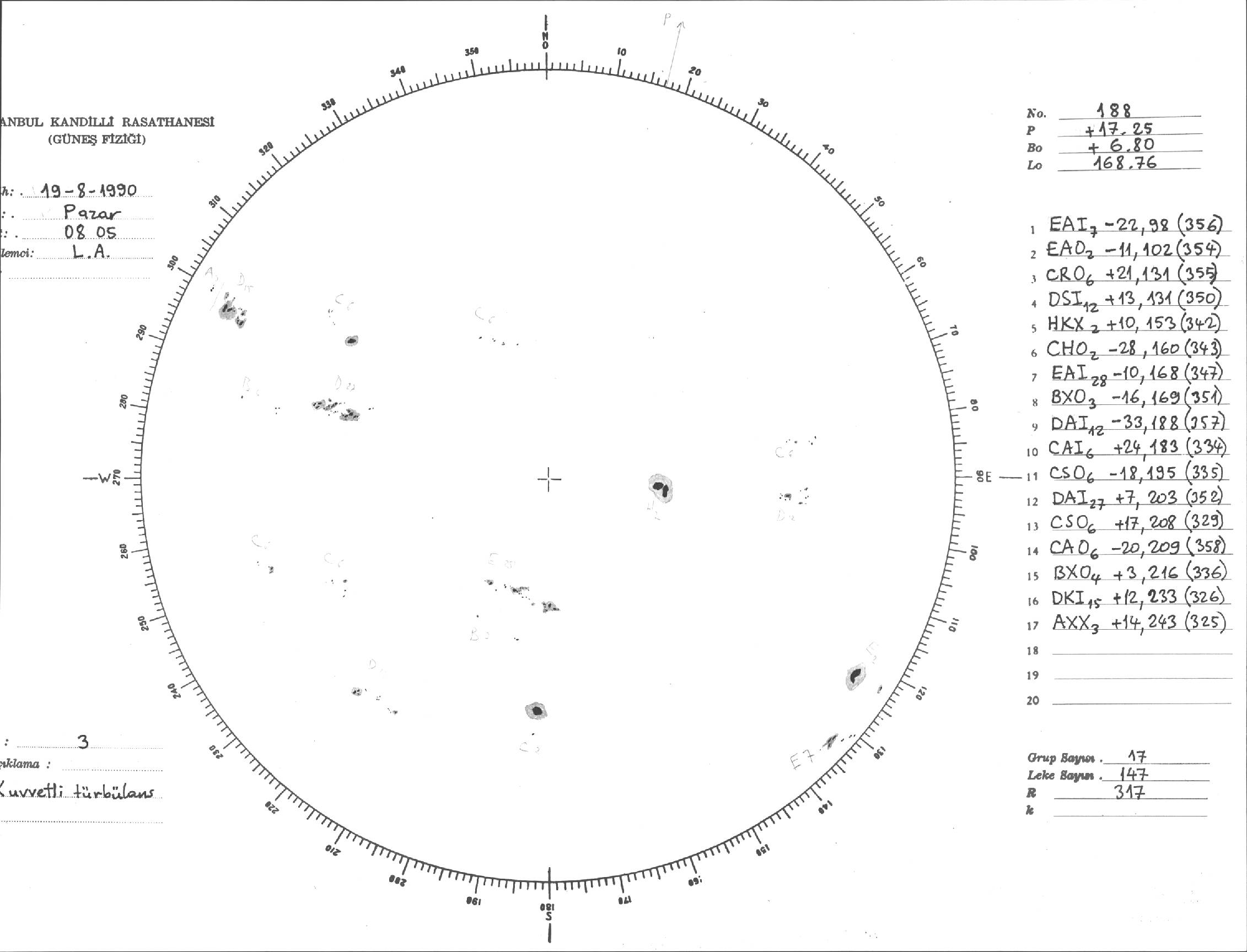 Güneş Lekesi Çizimi - 19.08.1990