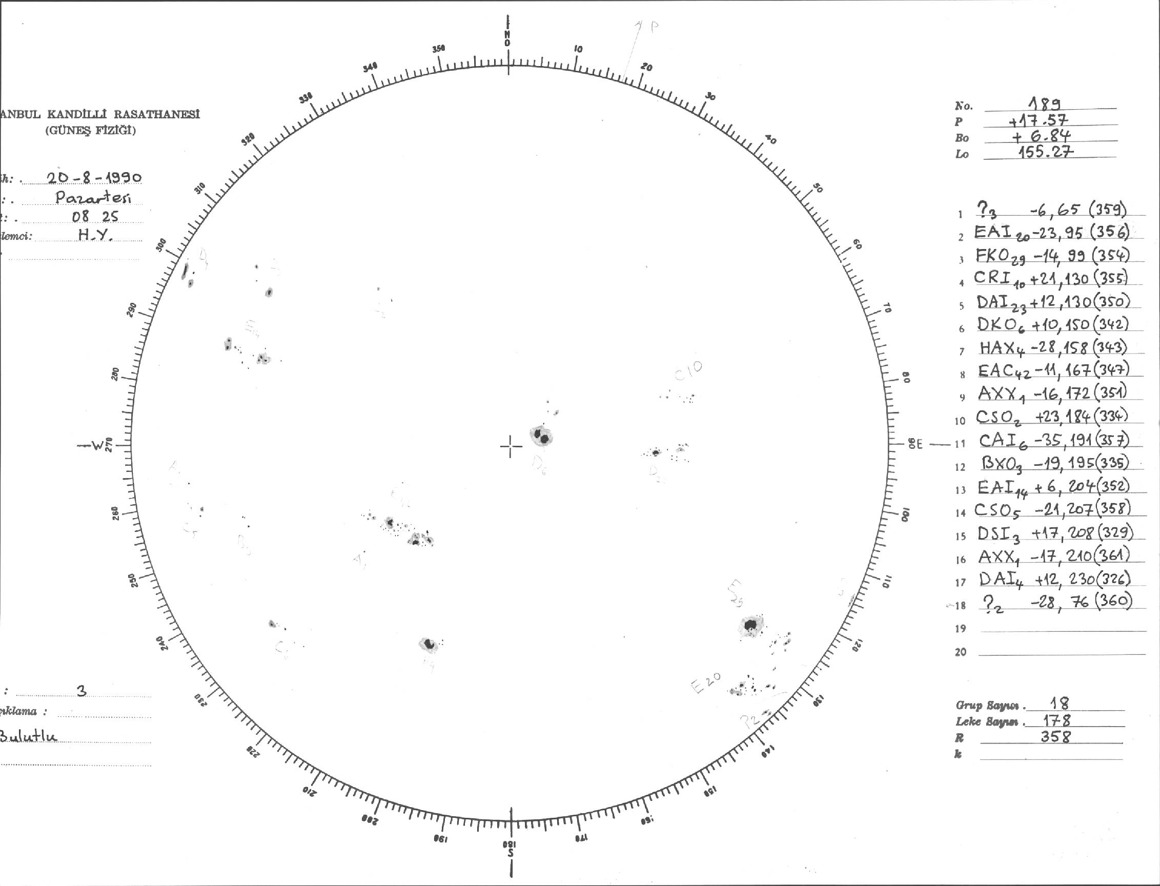 Güneş Lekesi Çizimi - 20.08.1990