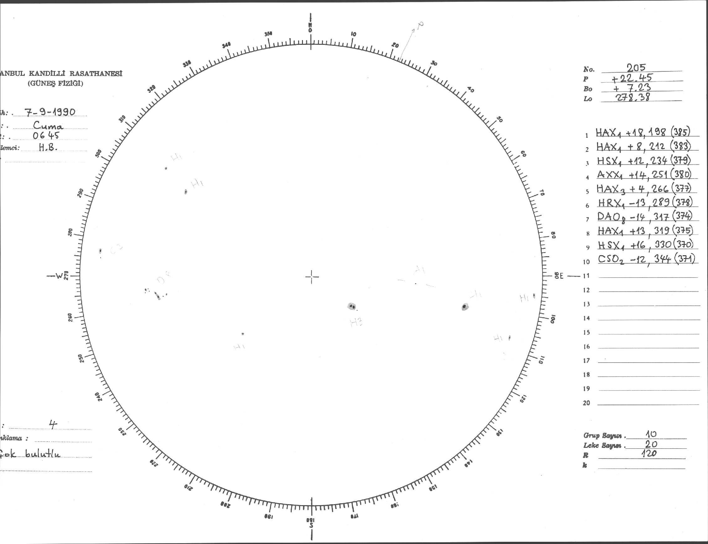 Güneş Lekesi Çizimi - 07.09.1990