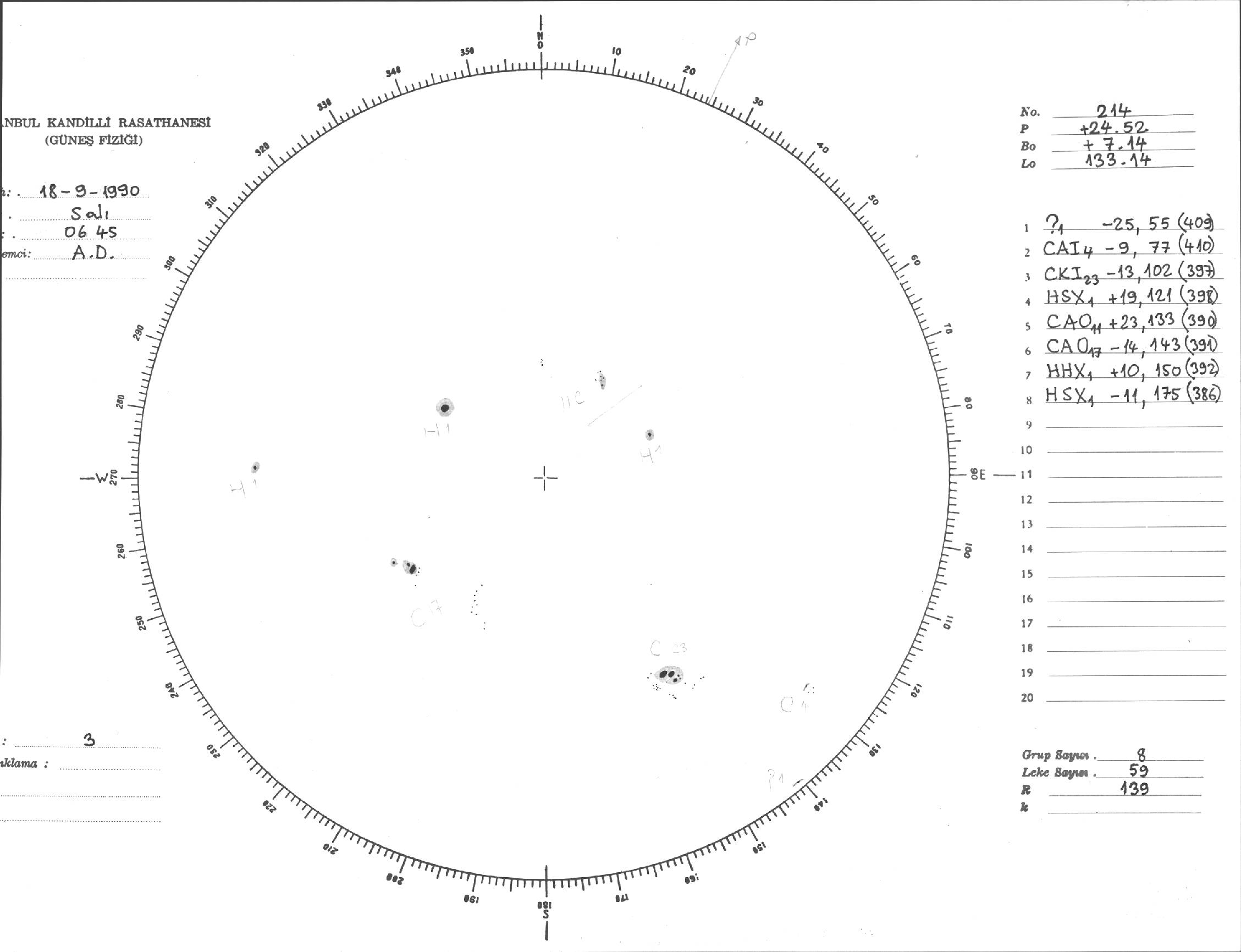 Güneş Lekesi Çizimi - 18.09.1990