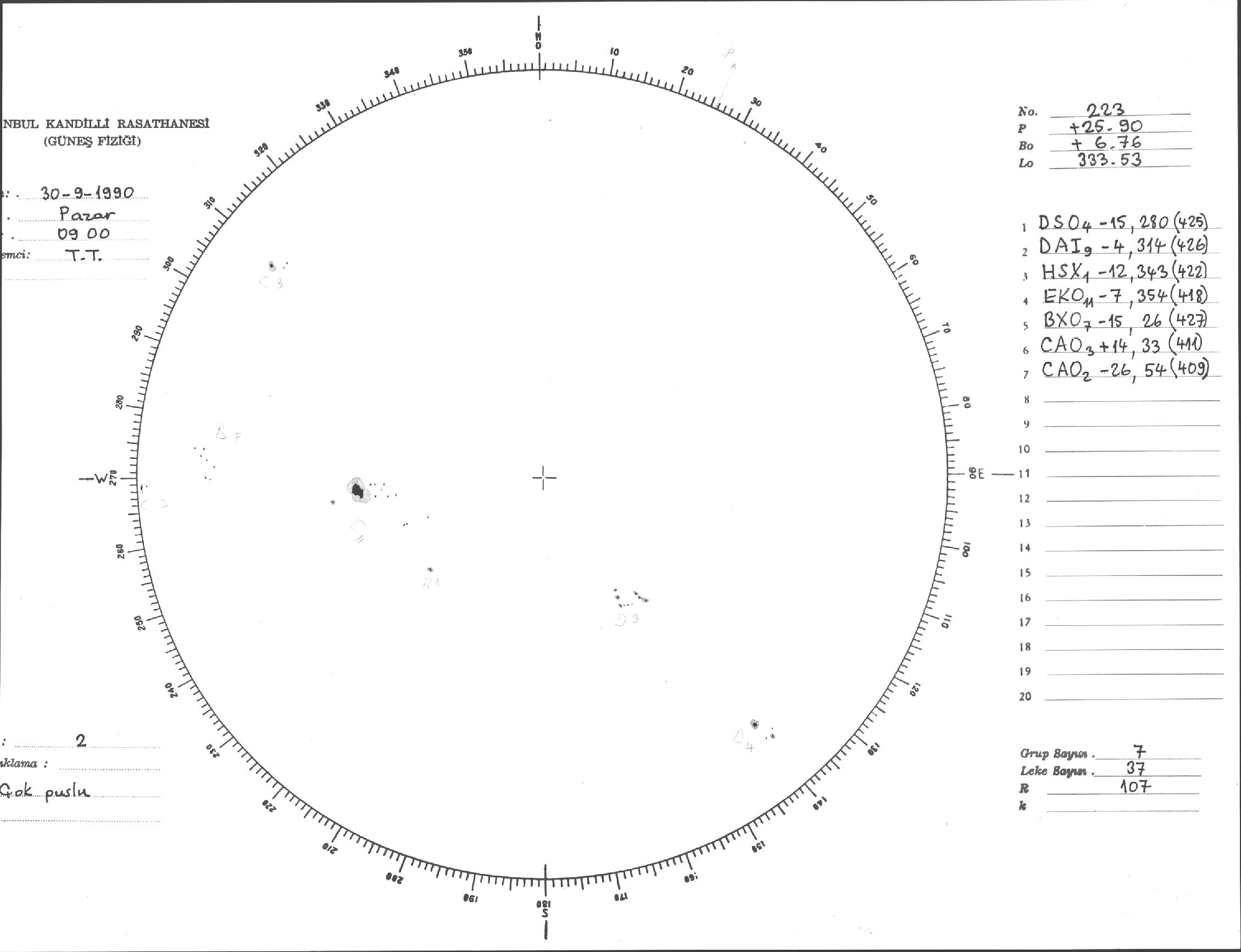 Güneş Lekesi Çizimi - 30.09.1990