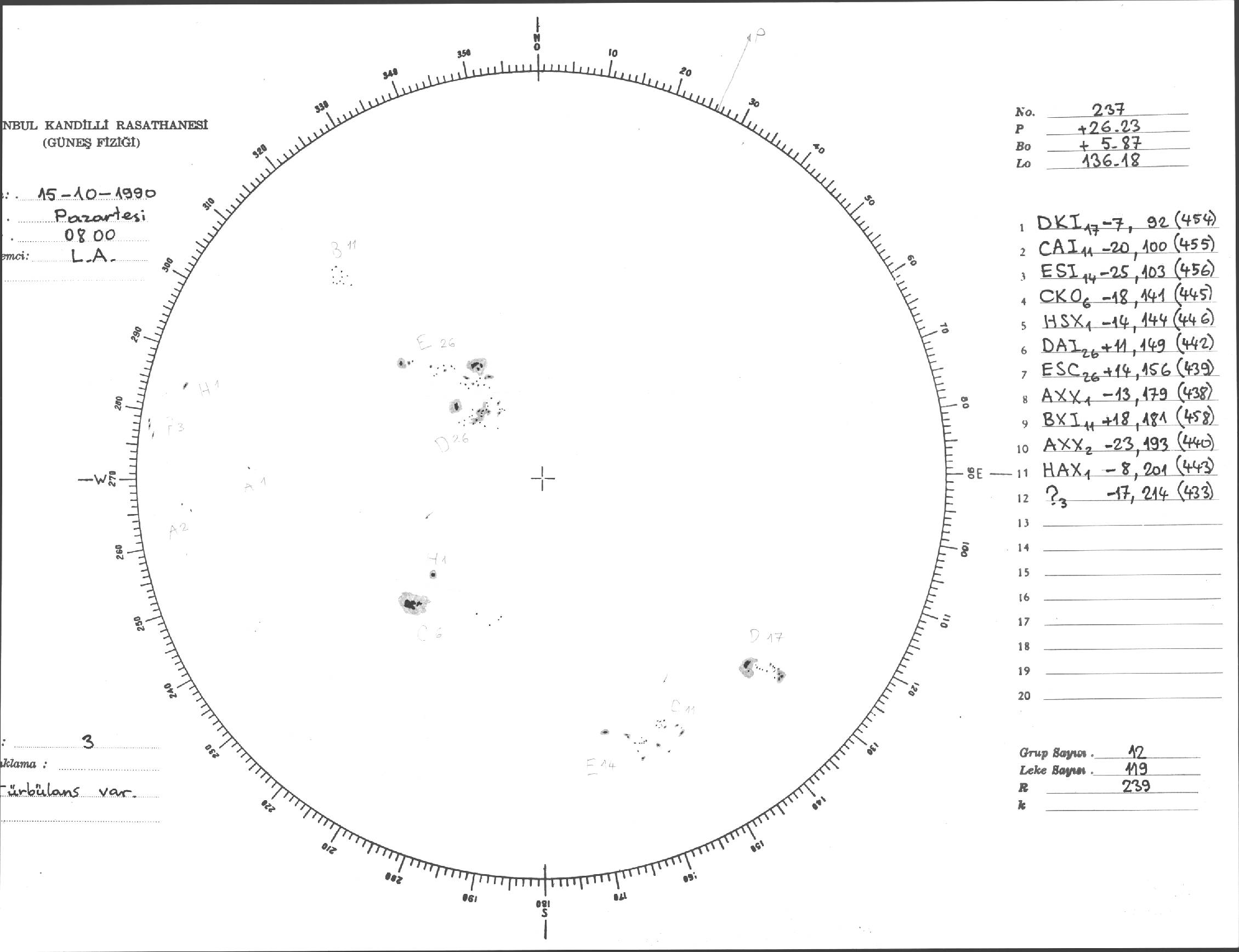 Güneş Lekesi Çizimi - 15.10.1990