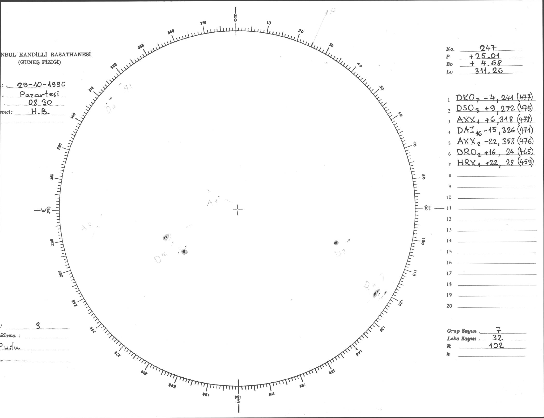 Güneş Lekesi Çizimi - 29.10.1990