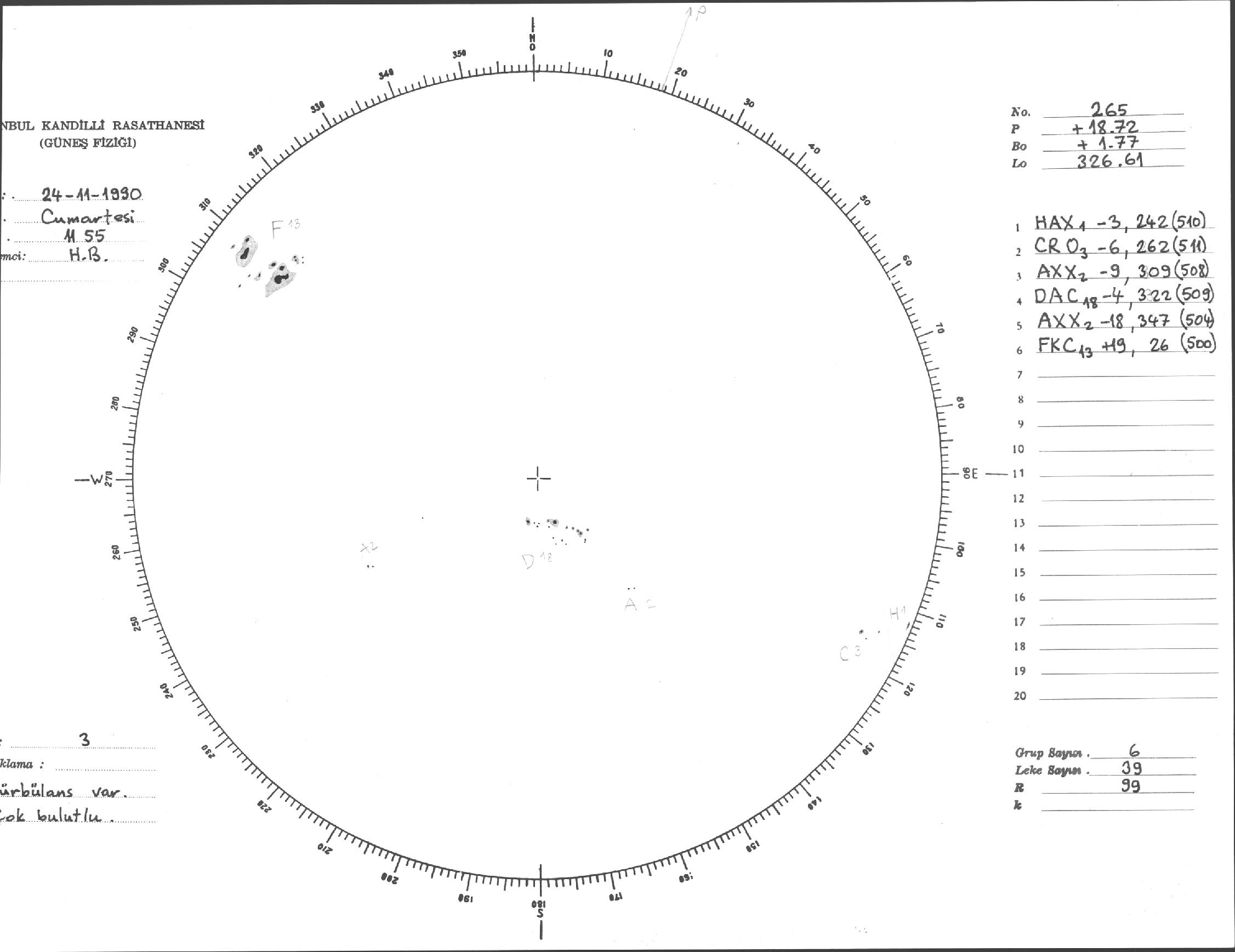 Güneş Lekesi Çizimi - 24.11.1990