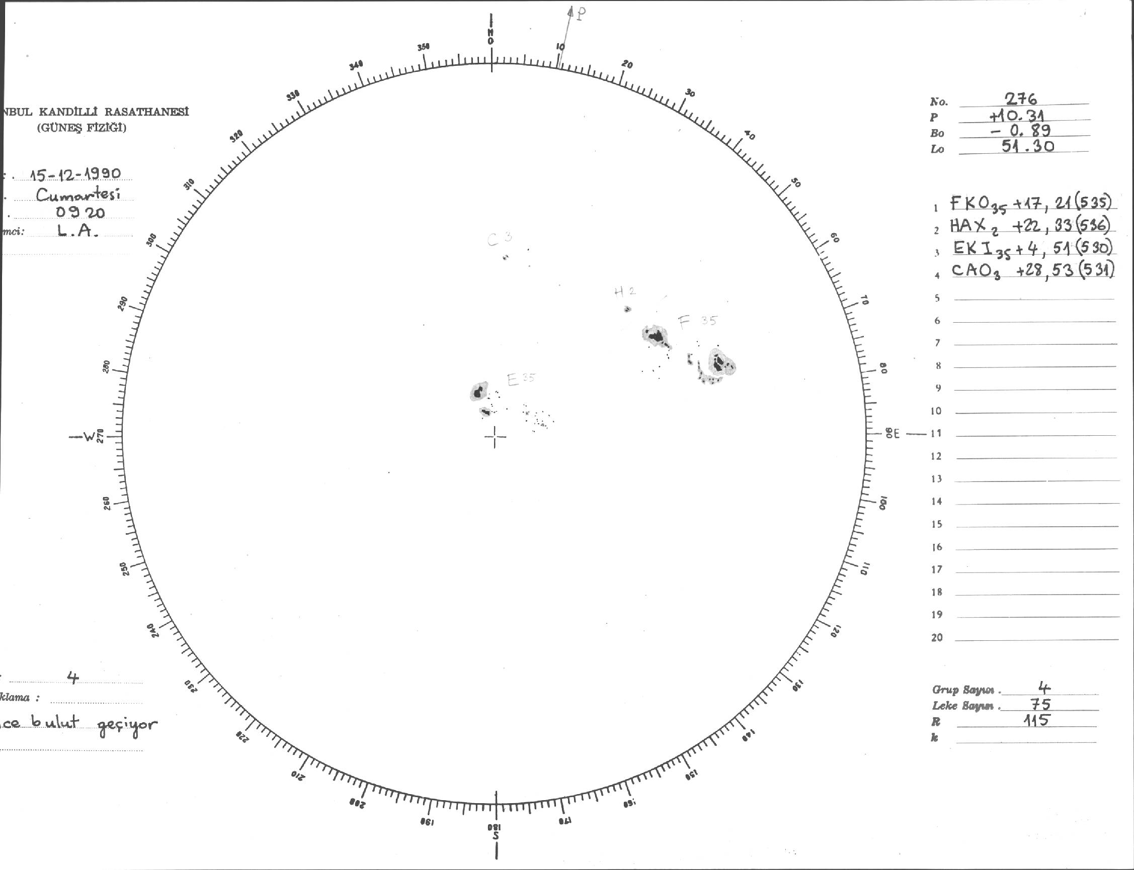 Güneş Lekesi Çizimi - 15.12.1990