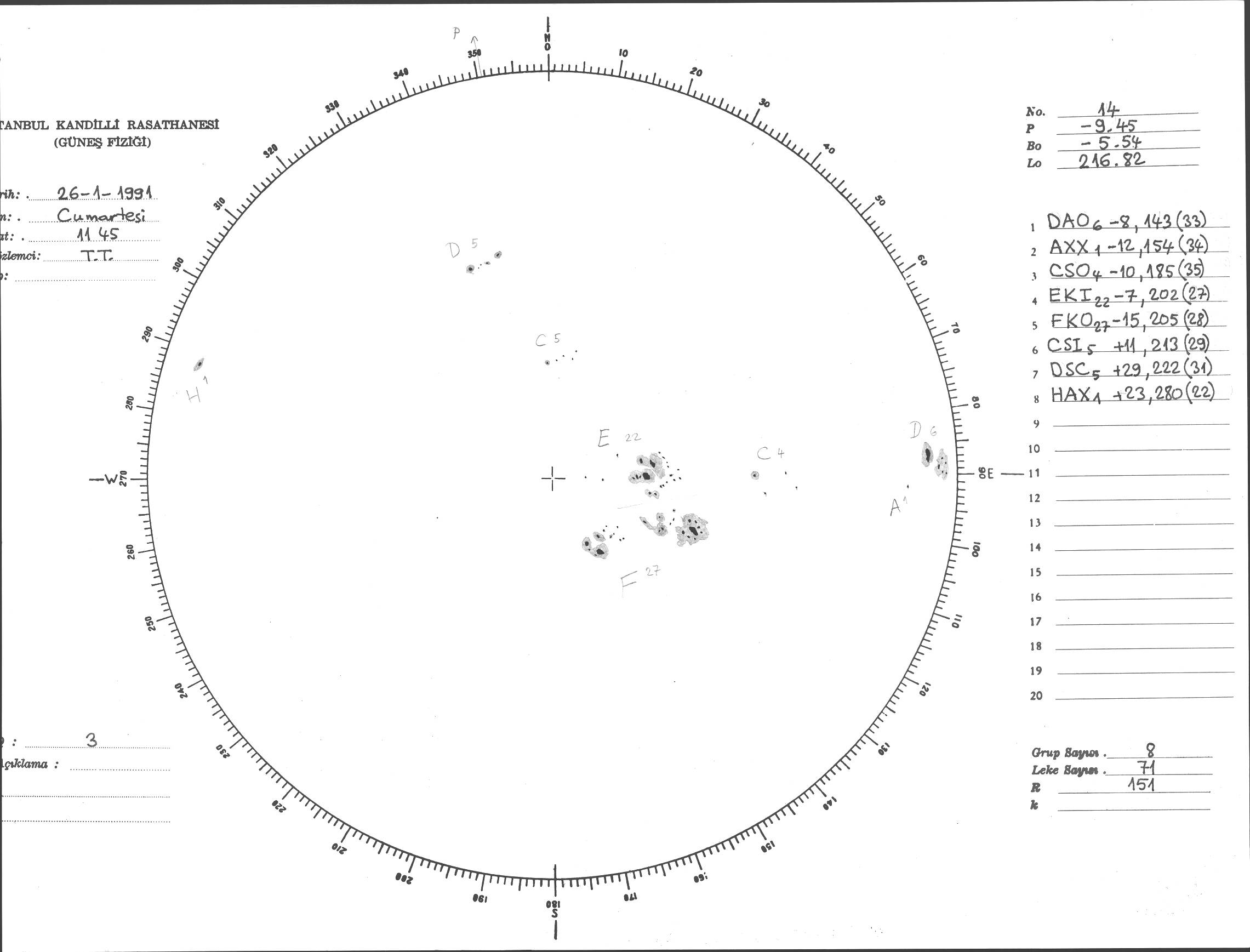 Güneş Lekesi Çizimi - 26.01.1991