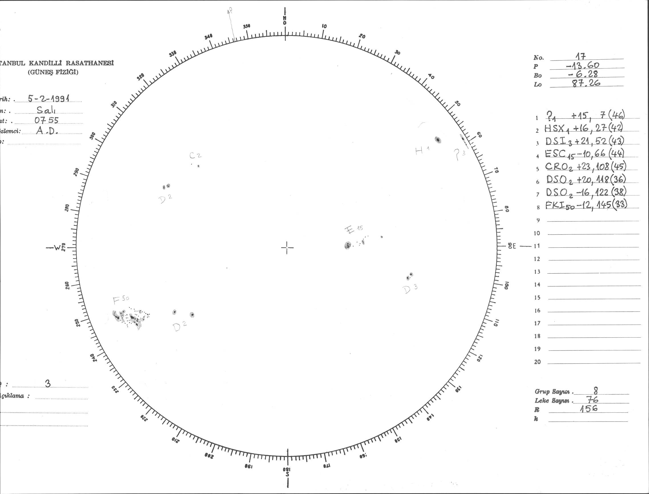 Güneş Lekesi Çizimi - 05.02.1991
