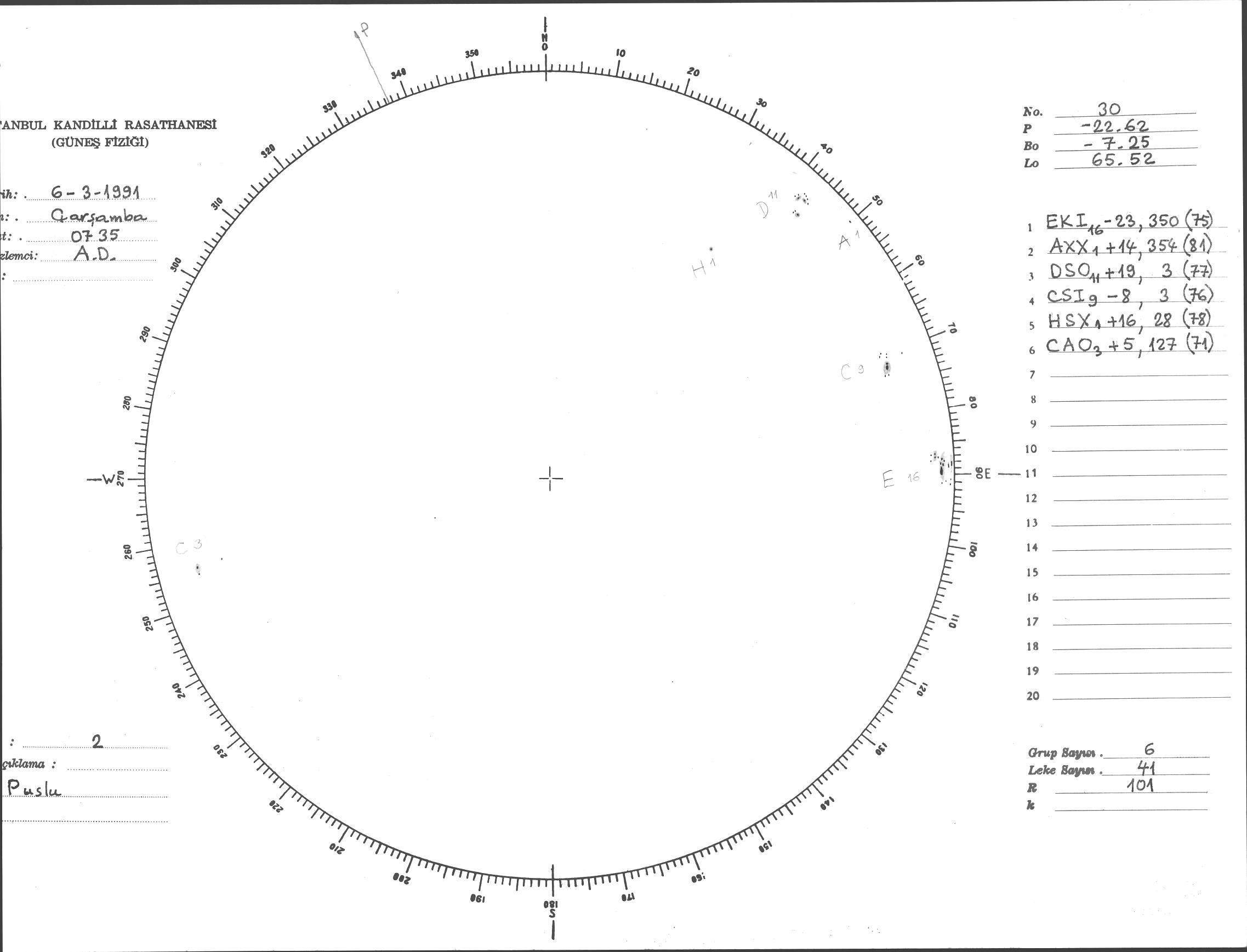 Güneş Lekesi Çizimi - 06.03.1991