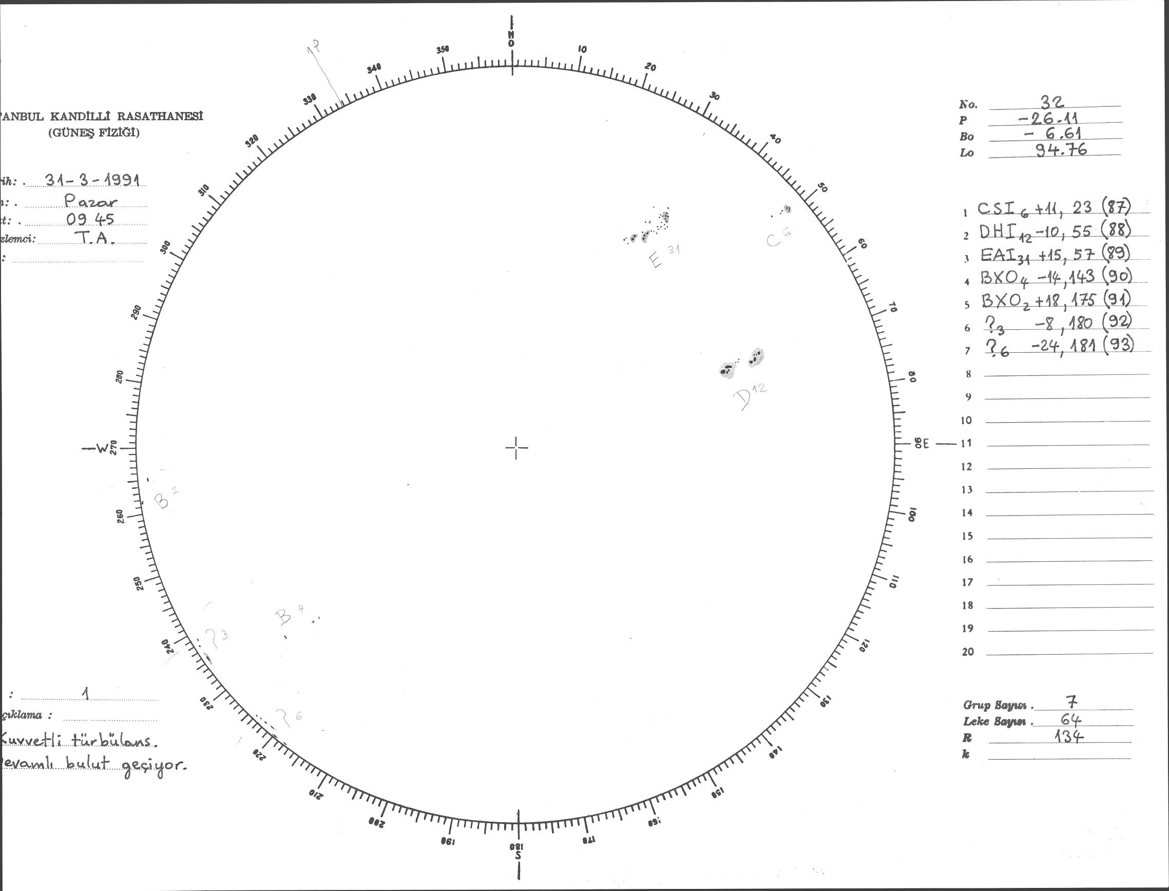 Güneş Lekesi Çizimi - 31.03.1991