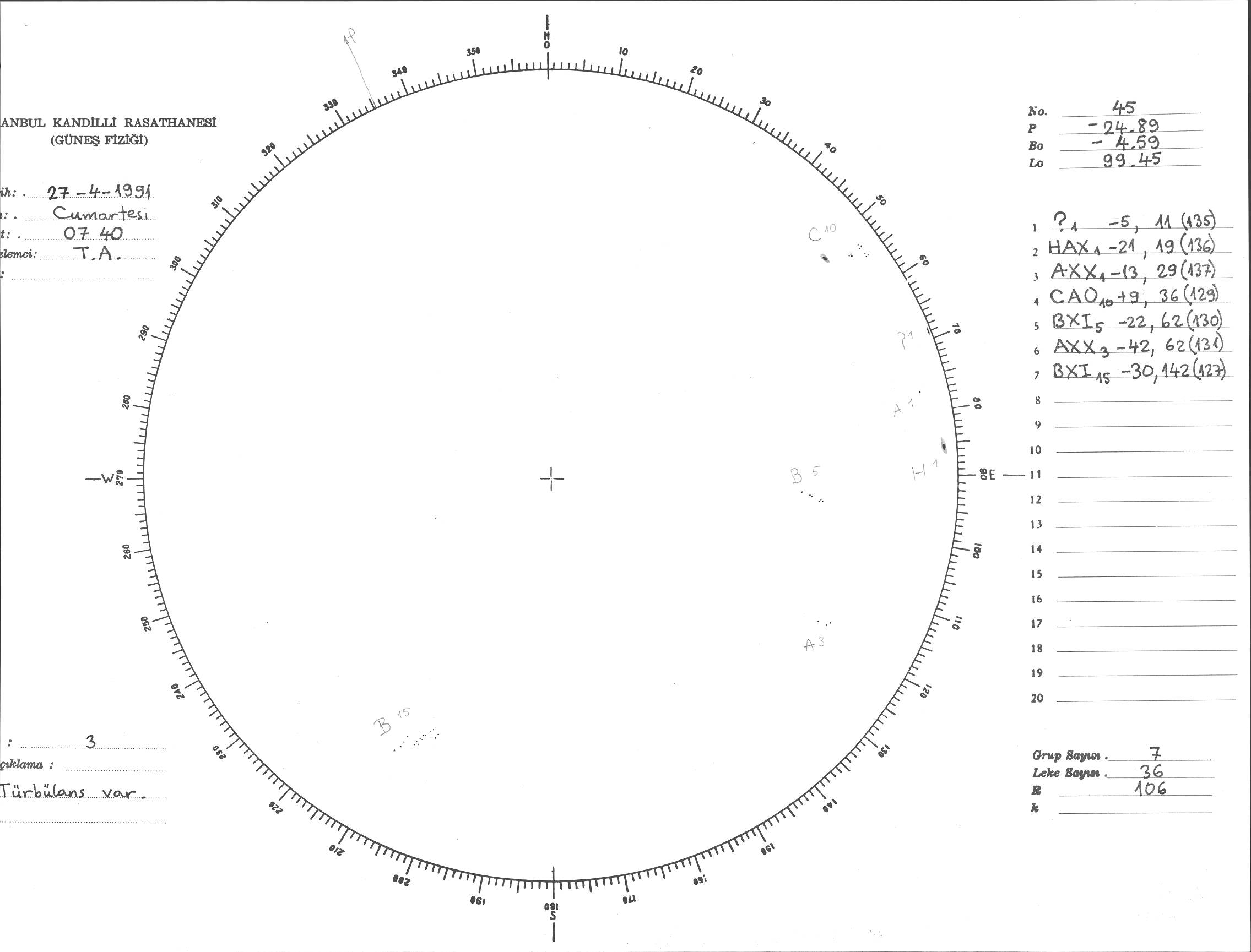 Güneş Lekesi Çizimi - 27.04.1991