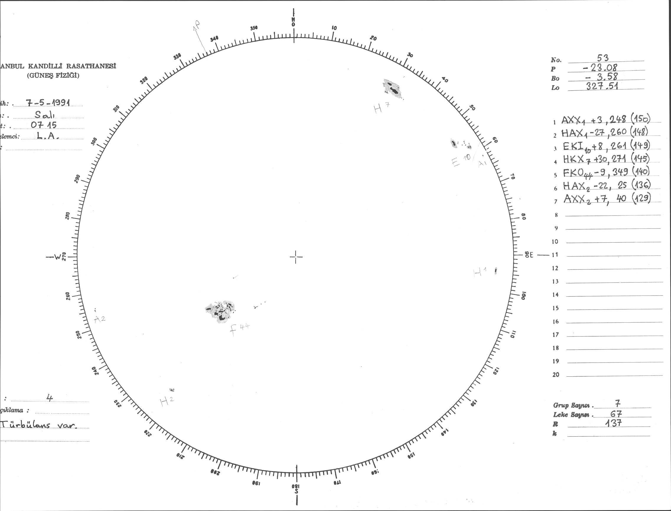 Güneş Lekesi Çizimi - 07.05.1991