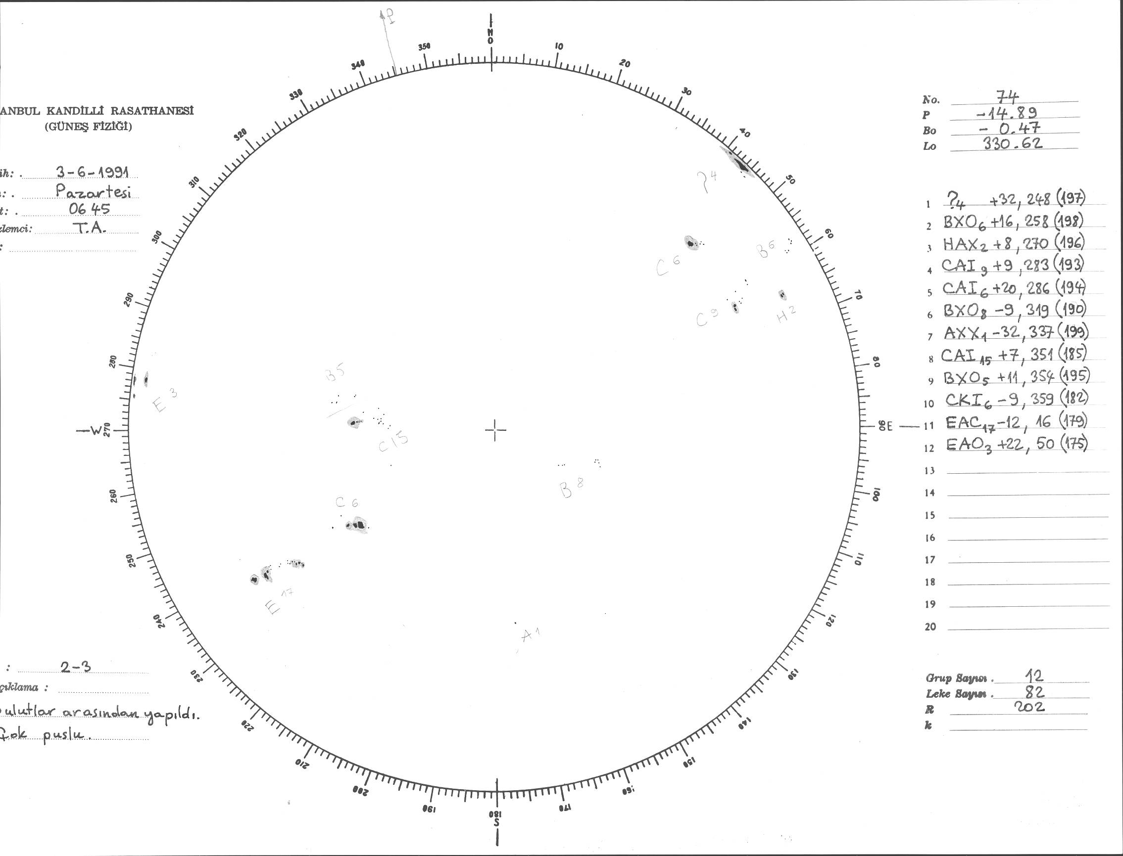 Güneş Lekesi Çizimi - 03.06.1991
