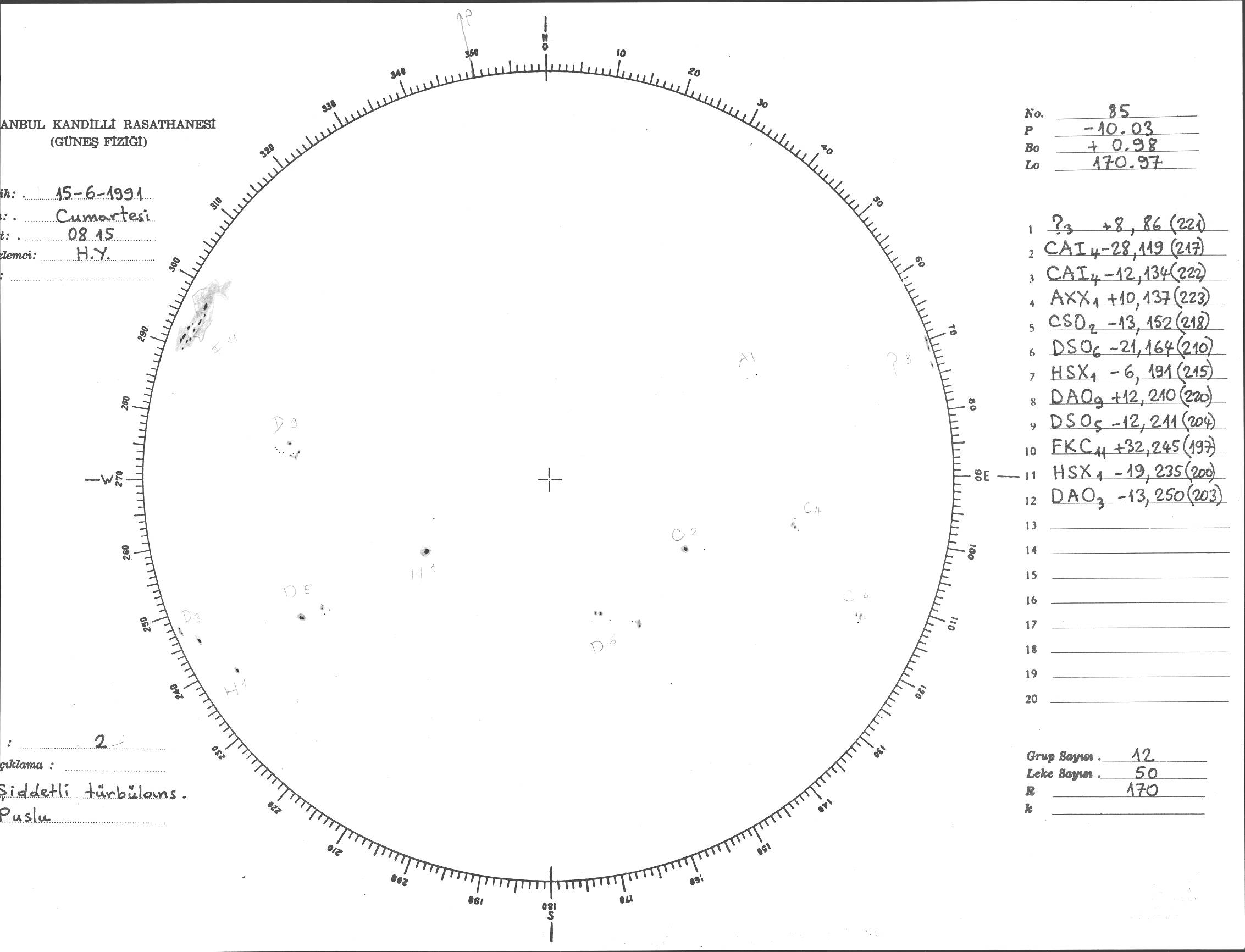 Güneş Lekesi Çizimi - 15.06.1991