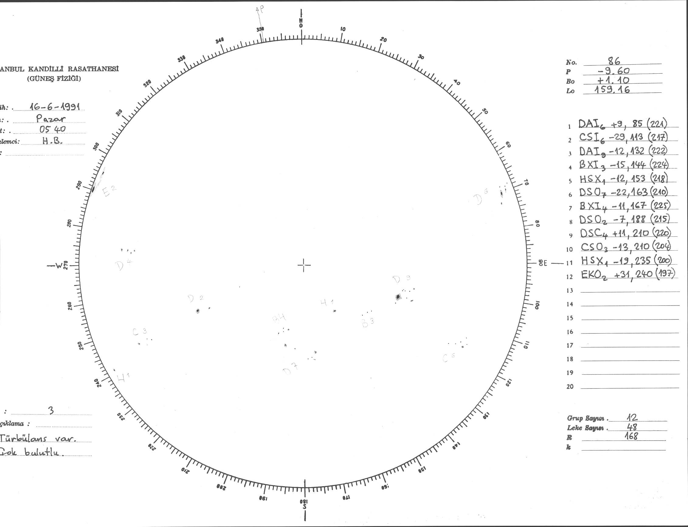 Güneş Lekesi Çizimi - 16.06.1991
