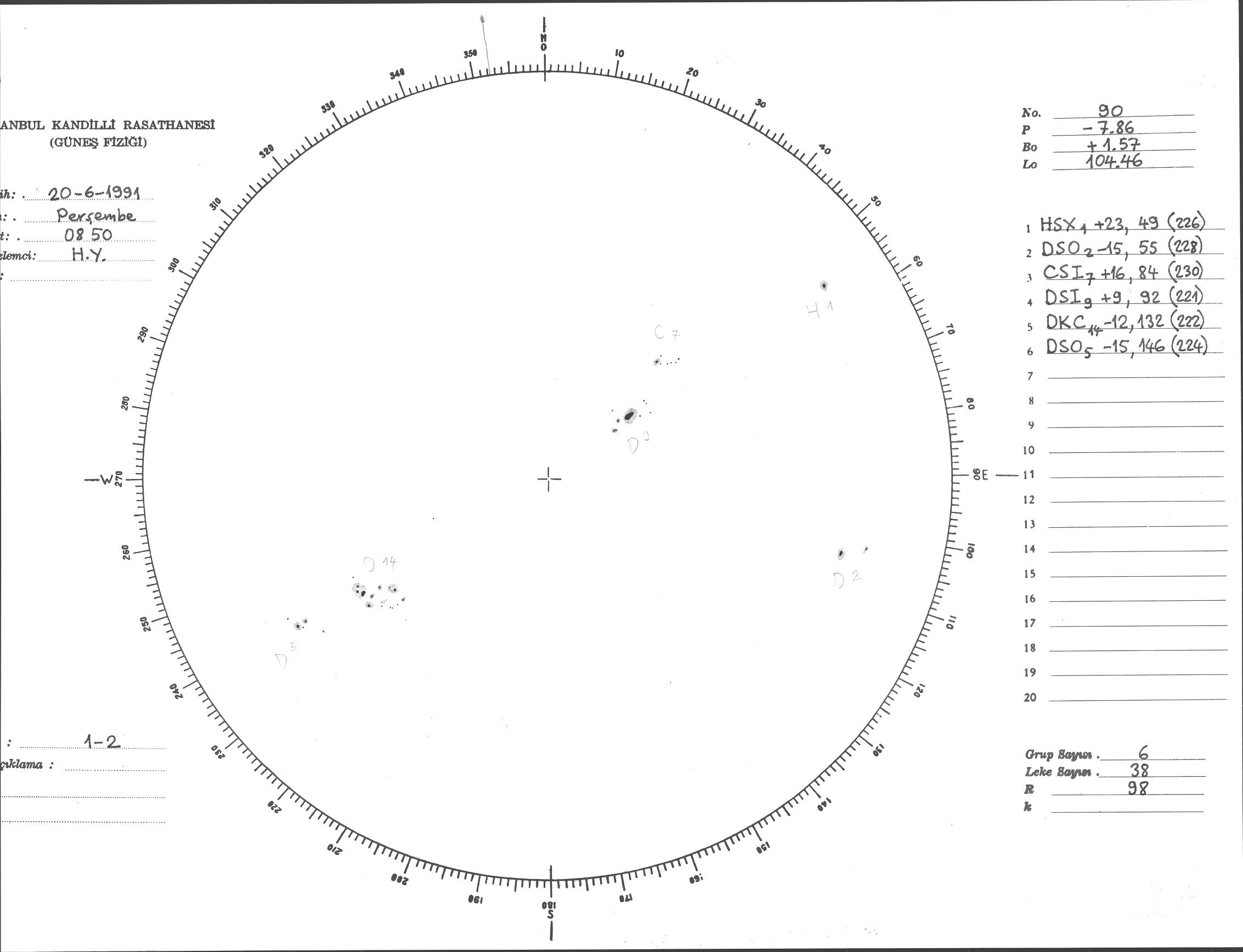 Güneş Lekesi Çizimi - 20.06.1991