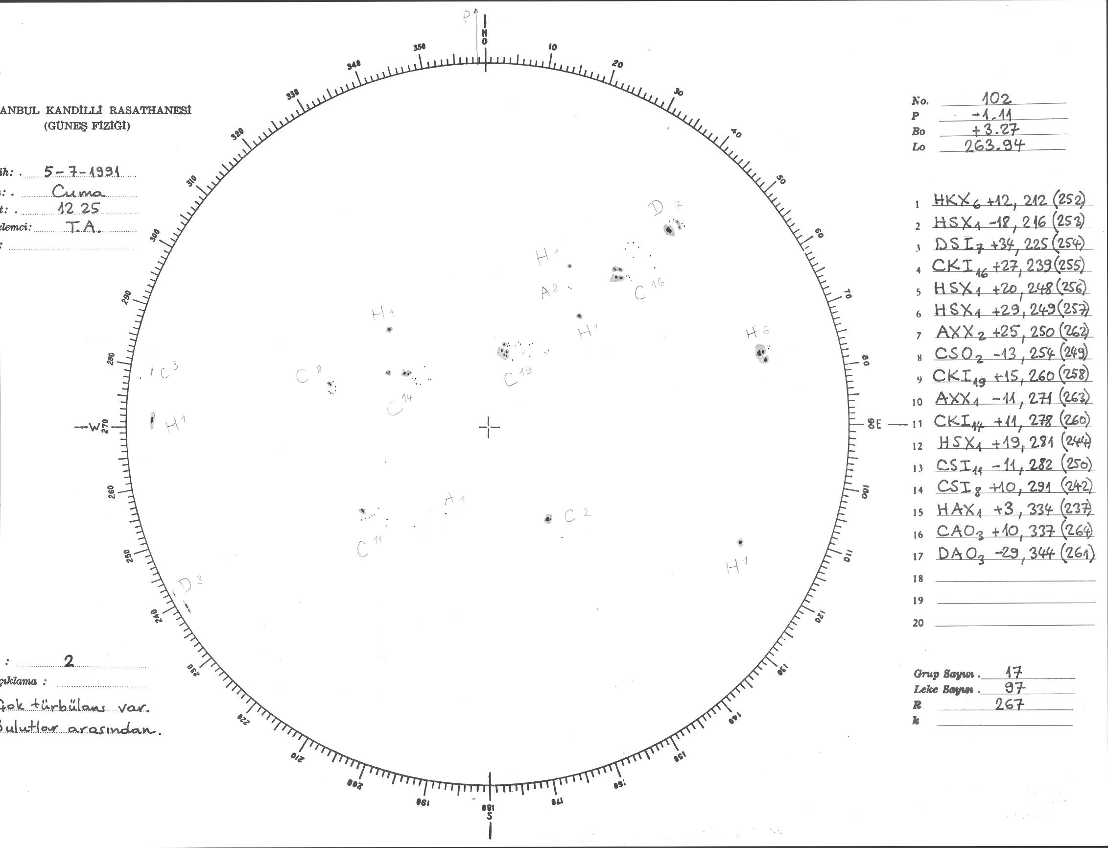 Güneş Lekesi Çizimi - 05.07.1991