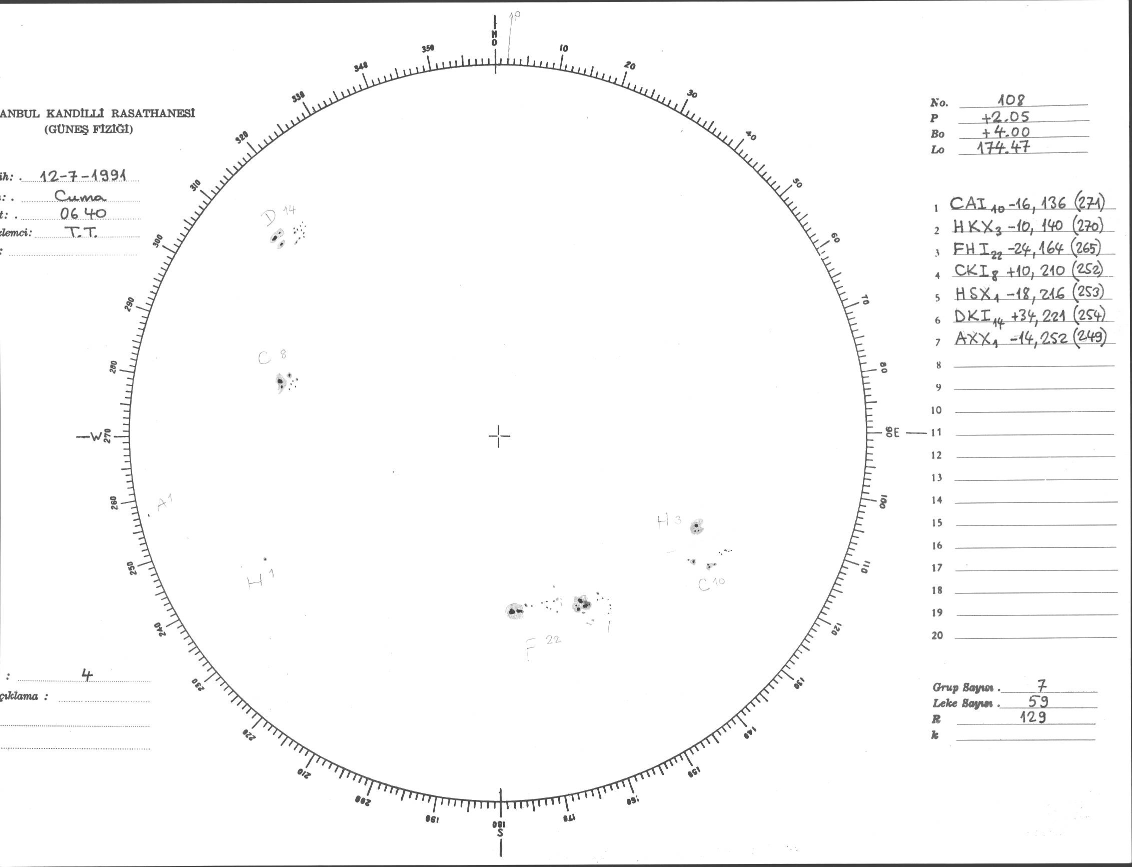 Güneş Lekesi Çizimi - 12.07.1991