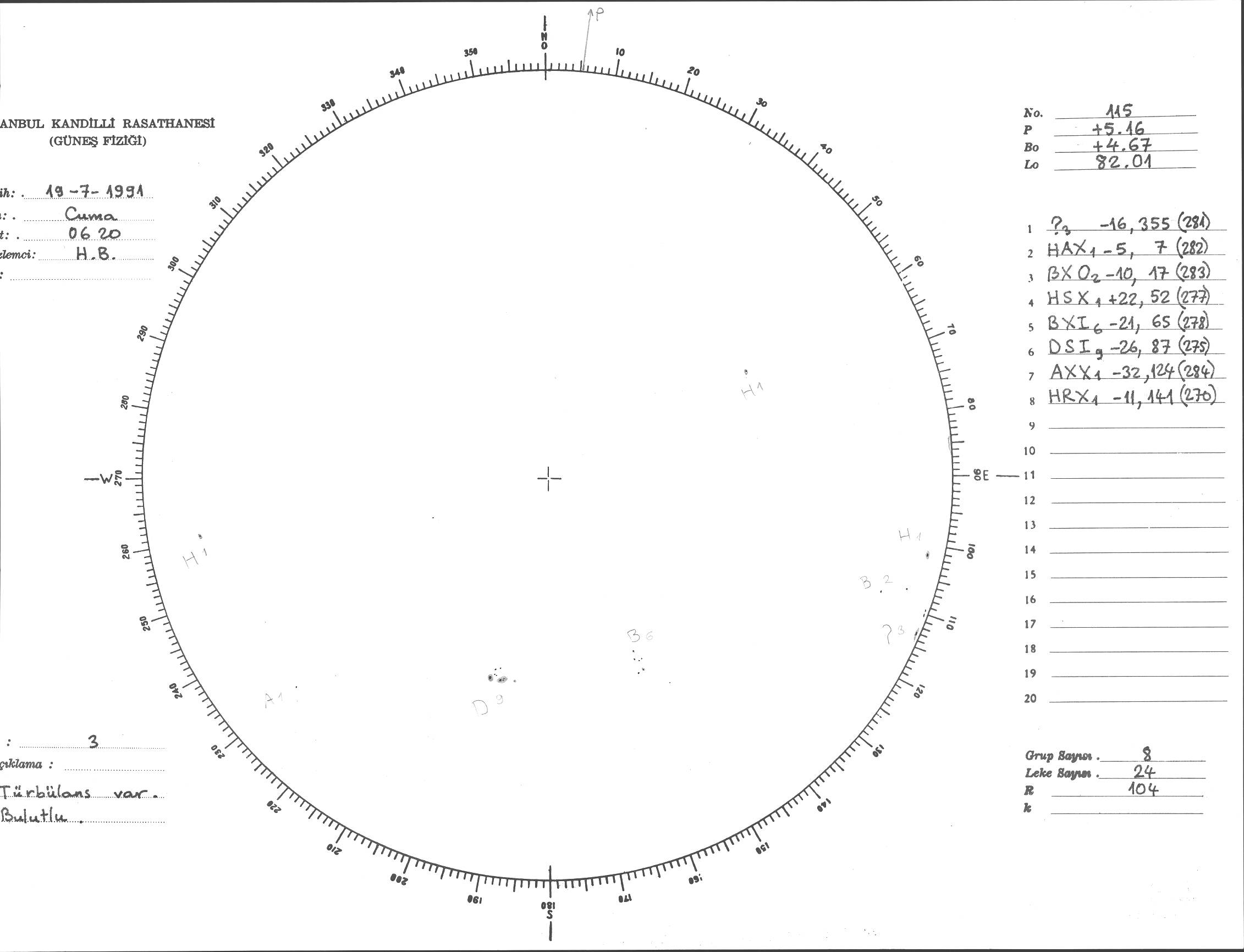 Güneş Lekesi Çizimi - 19.07.1991