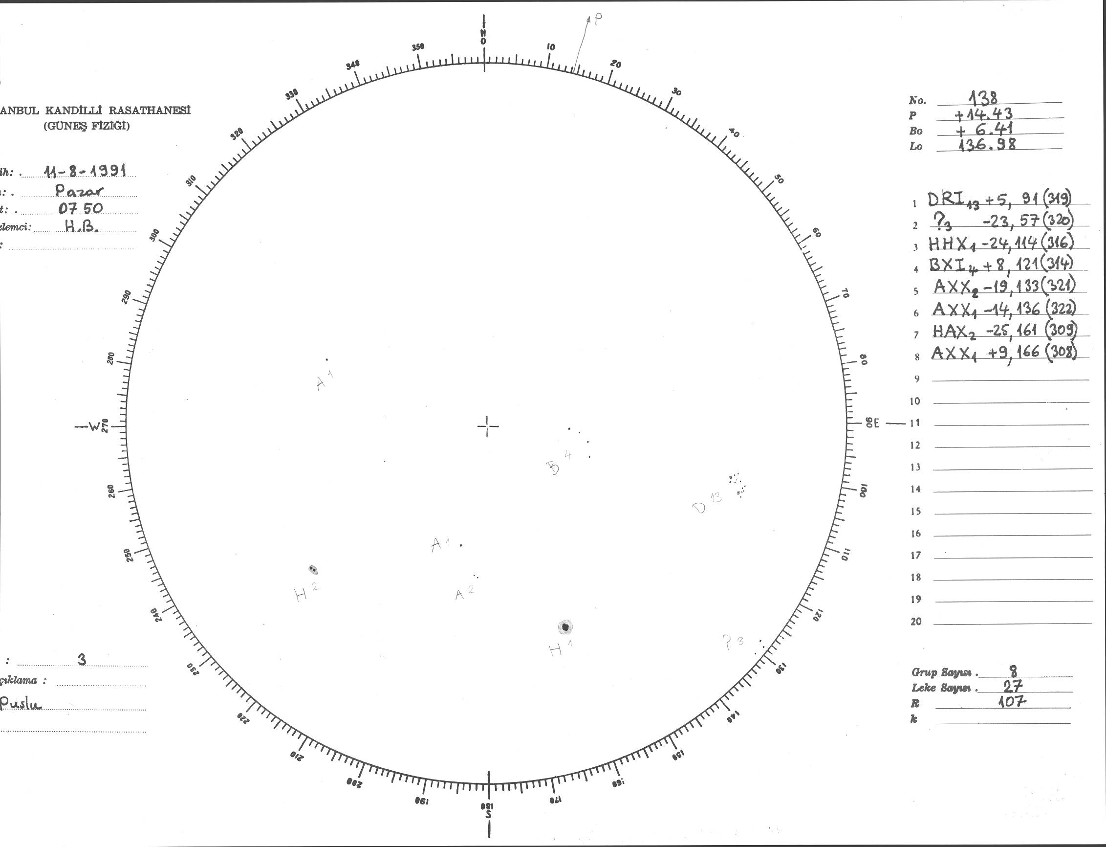 Güneş Lekesi Çizimi - 11.08.1991