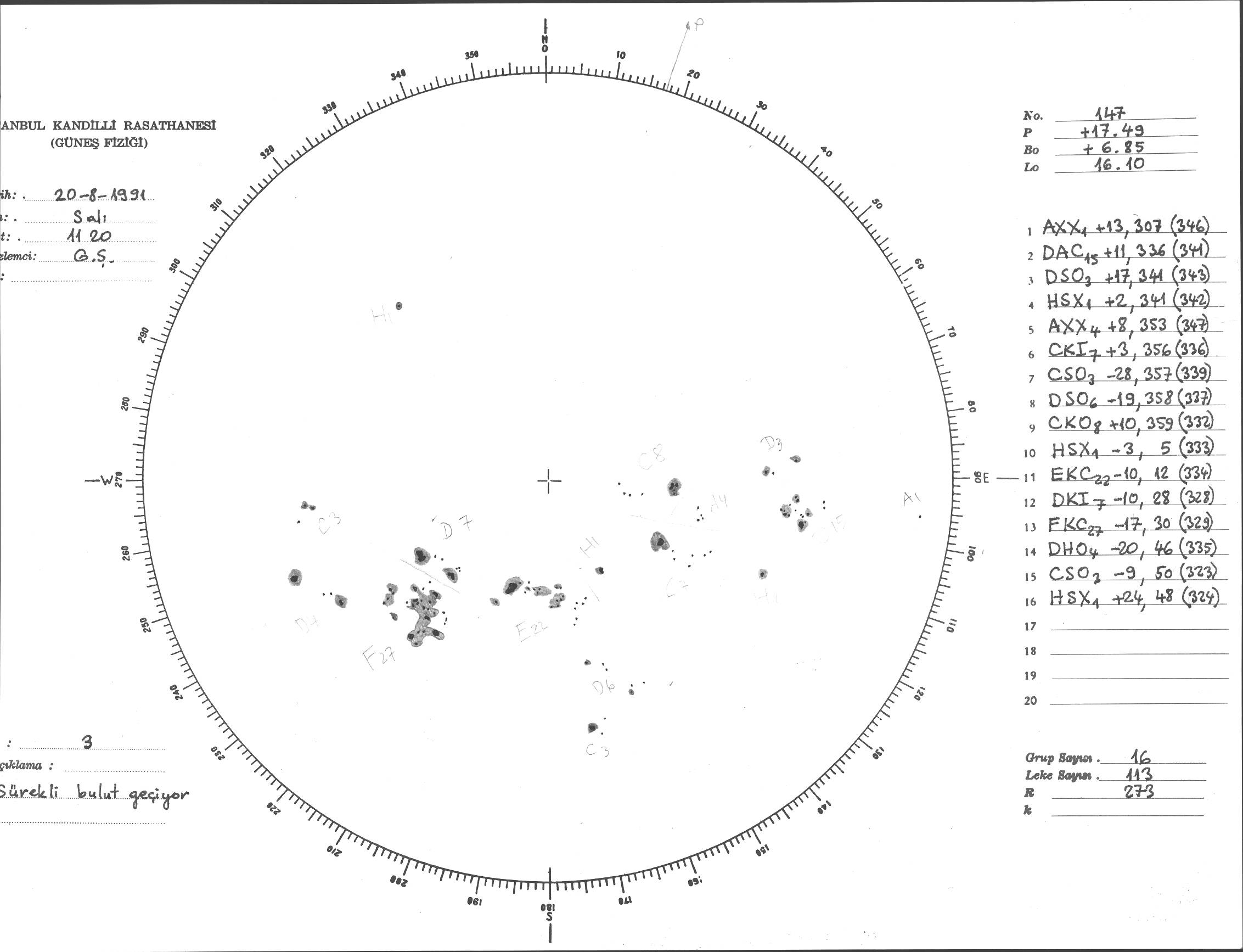 Güneş Lekesi Çizimi - 20.08.1991