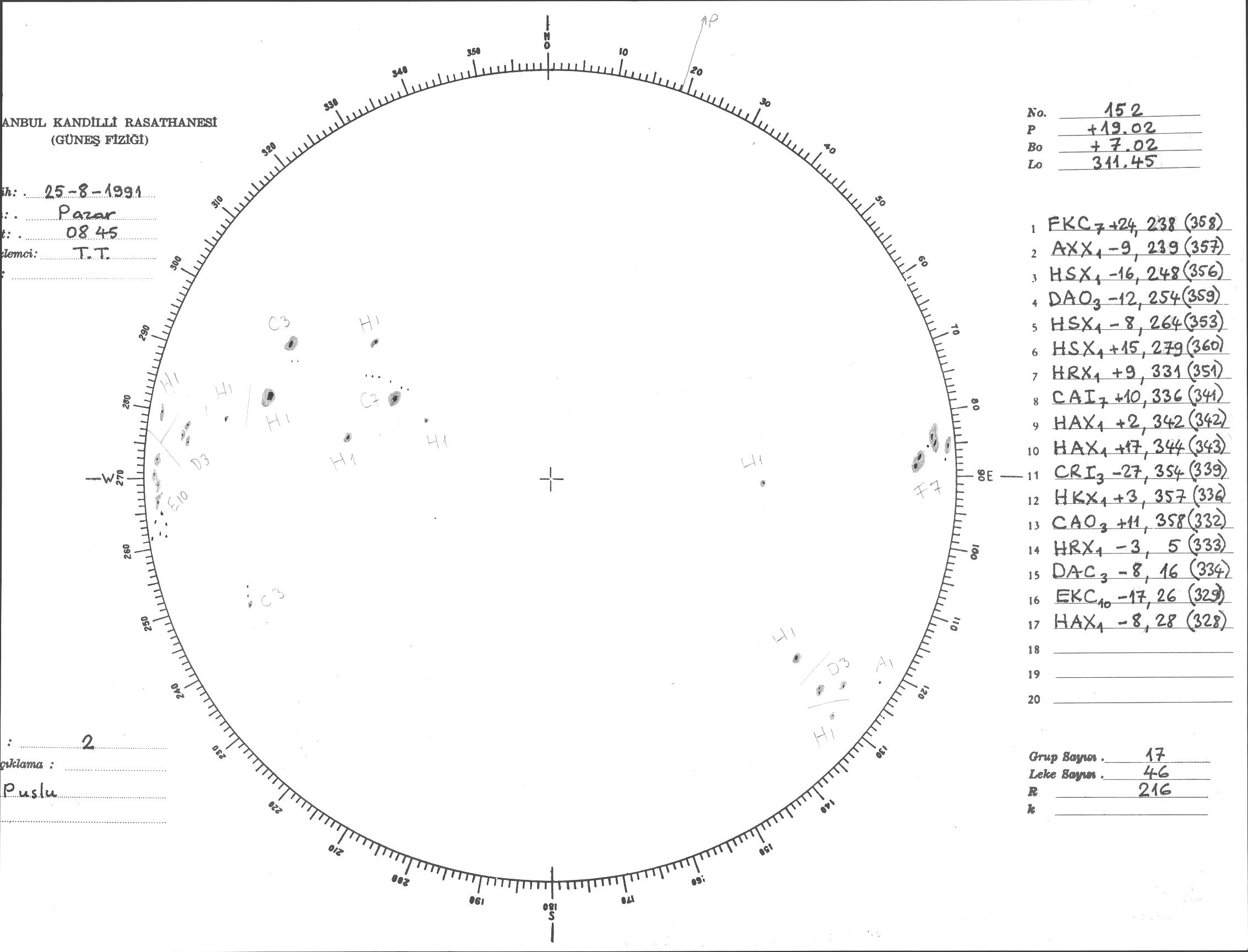Güneş Lekesi Çizimi - 25.08.1991