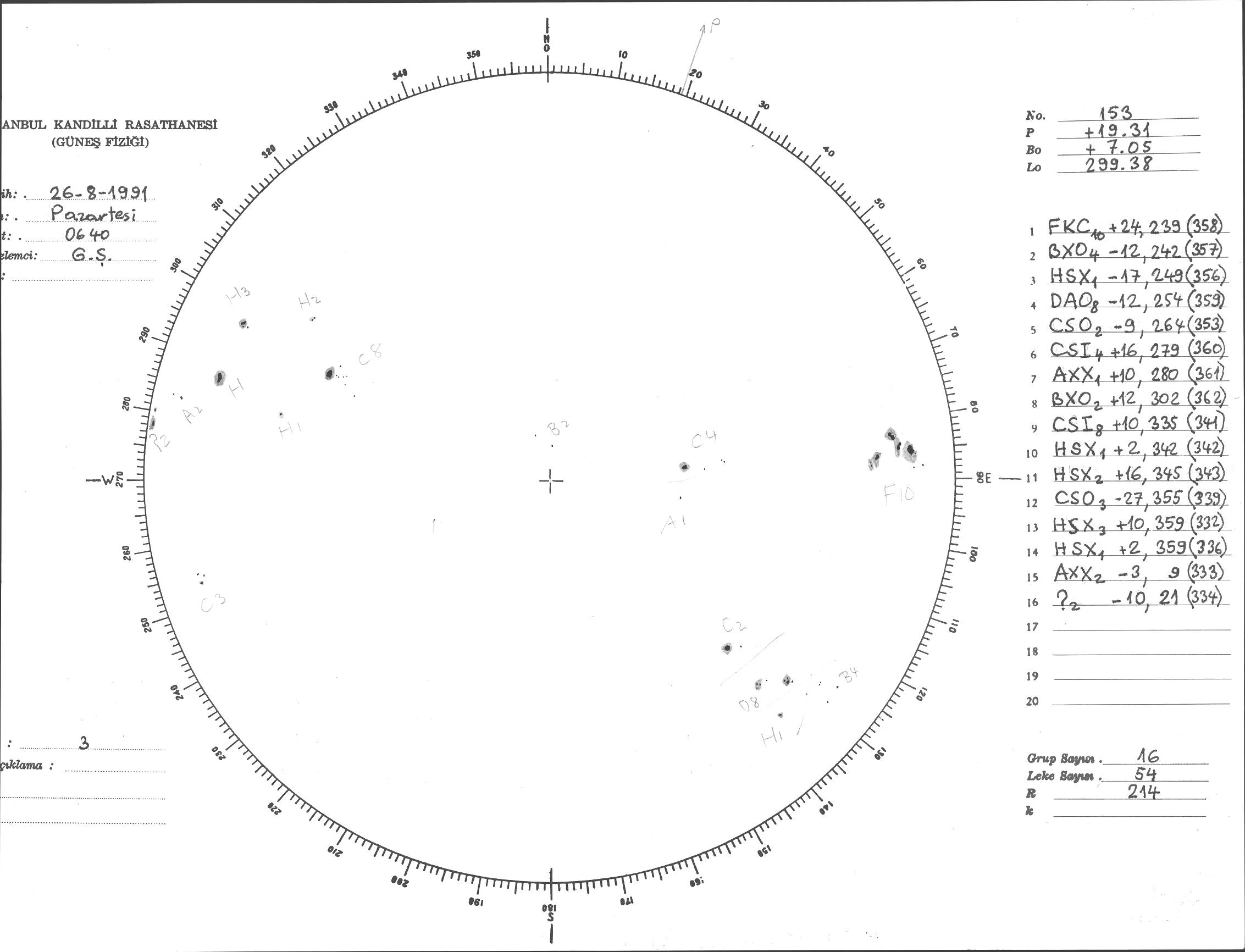 Güneş Lekesi Çizimi - 26.08.1991