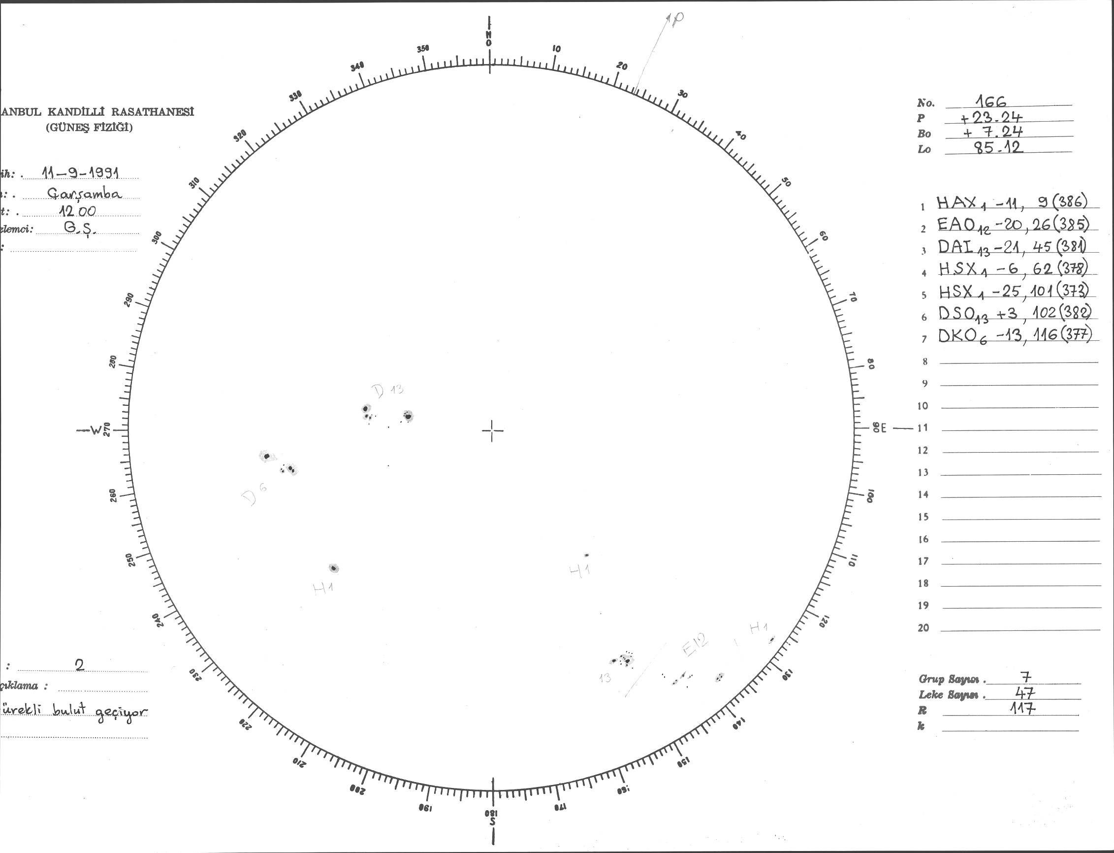 Güneş Lekesi Çizimi - 11.09.1991