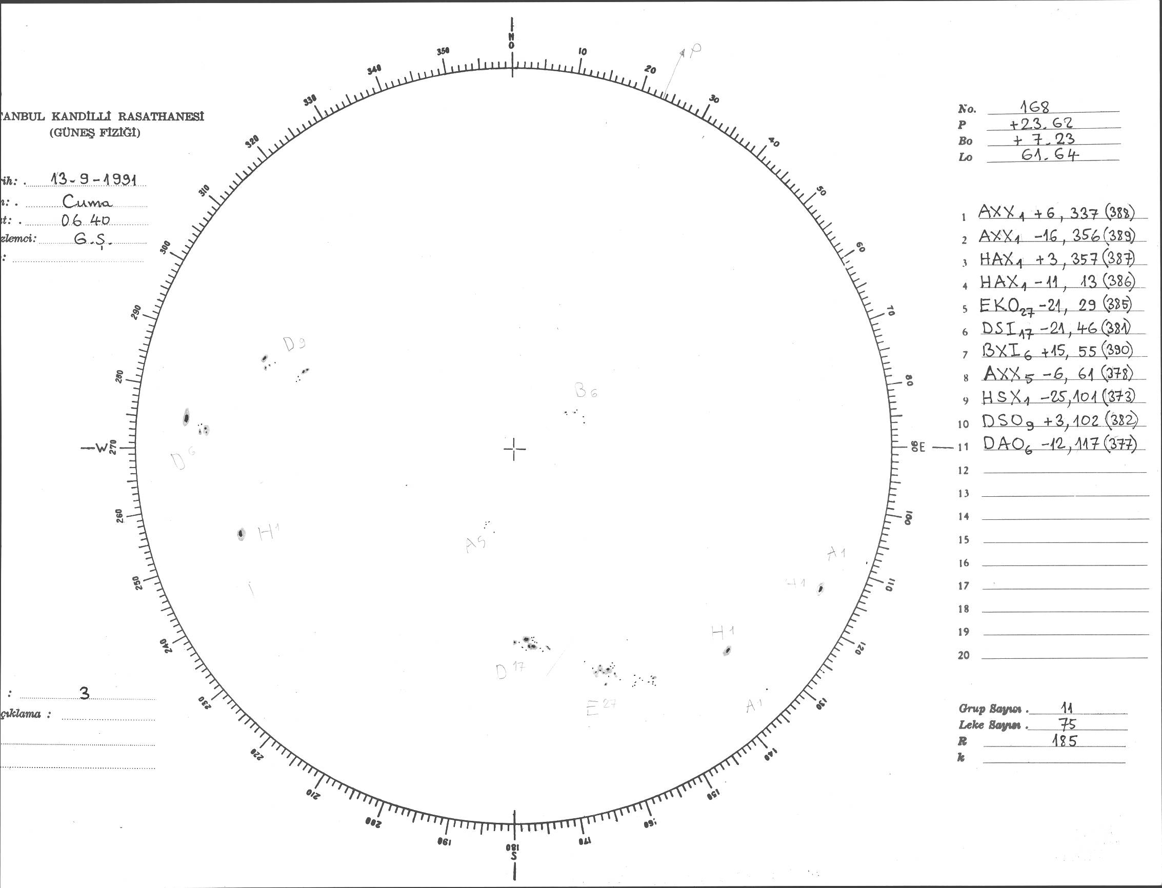 Güneş Lekesi Çizimi - 13.09.1991