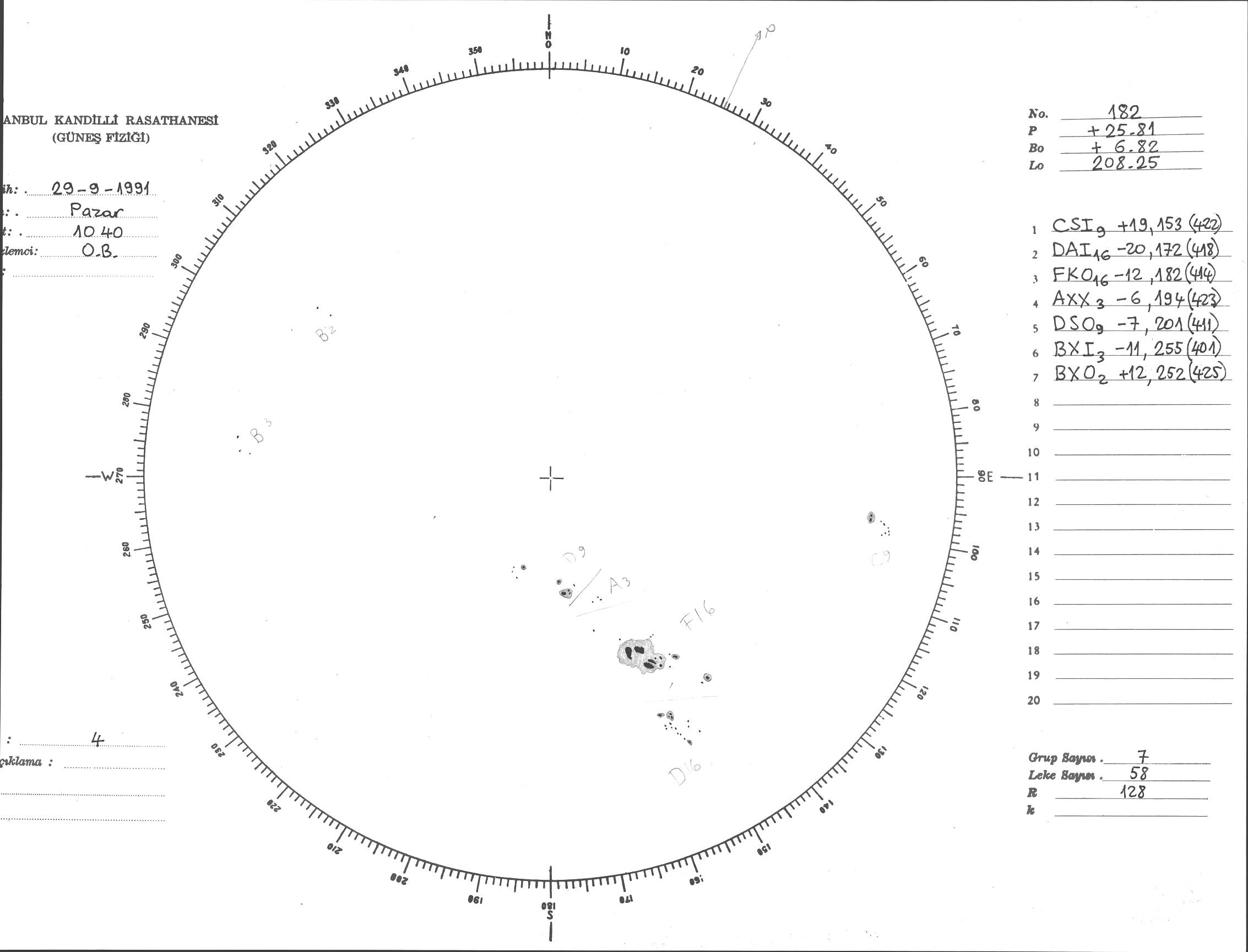 Güneş Lekesi Çizimi - 29.09.1991